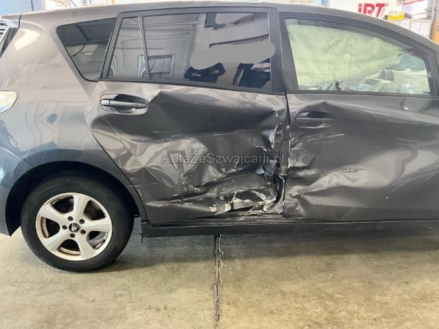 | Condition_and_Equipment | Demontage Persönliche Gegenstände oder Ladegut im Fahrzeug werden entfernt. Zustand Fahrzeug muss transportiert werden (Höhe und Breite beachten). Fahrzeug ist NICHT fahrbar. Fahrzeug ist NICHT rollbar. Schlüssel Nur ein Schlüssel vorhanden. --- Rechts Rechte Seite beschädigt. Anstoss rechts im Bereich der B-Säule. Innenraum Dachhimmel gerissen. Sonstige Schäden Div.Carrosserie Teile sind leicht beschädigt. Lackierung matt (stumpf, beschädigt). --- Serienaustattung Airbag Fahrer und Beifahrerseite Elektrische Fensterheber vorne + hinten Tempomat Seitenairbag Fahrer und Beifahrerseite Nebelscheinwerfer Zentralverriegelung mit Fernbedienung Lenkrad verstellbar Kopfairbag vorne und hinten Lederschaltknauf Audiofernbedienung am Lenkrad Stabilitätskontrolle VSC + Traktionskontrolle TRC Servolenkung elektrisch Dachkonsole mit Spiegel Reifenreparaturset mit Kompressor Frontsitze mit Schleudertrauma-Schutzsystem WIL Knieairbag Fahrer Dieselpartikelfilter Aussenspiegel el.verstell- u. heizbar/ Einstiegsbeleuchtung Isofix-Kindersitzbefestigung hinten Klimaanlage manuell Stahlfelgen 16" Klapptische an den Rücklehnen der Vordersitze AUX-Anschluss Berganfahrhilfe Fahrersitz höhenverstellbar Multi-Informationsdisplay/ Bordcomputer Rücksitze verschiebbar 2. Reihe/ Easy Flat-System ABS und EBD Elektr. Bremskraftverteilung inkl. BA Radio/ CD/ MP3/ 6 Lautsprecher inkl. Bluetooth Keine Gewähr auf die Angaben der Serienausstattungen Sonderausstattung Metallic-/ Mica Lackierung 4 Winterräder 16"/ Stahlfelgen |
