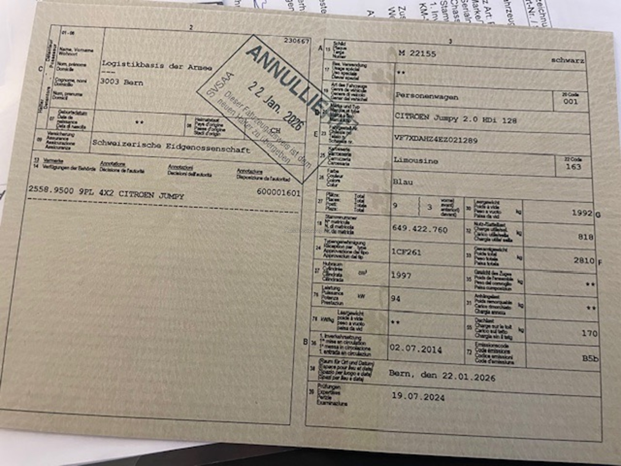 | Kommentar | Farbe auf Dach ist verwittert, einige Kratzer siehe Fotos. Bremsen hinten etwas Rostig. Fahrzeug von Armeeauktion |