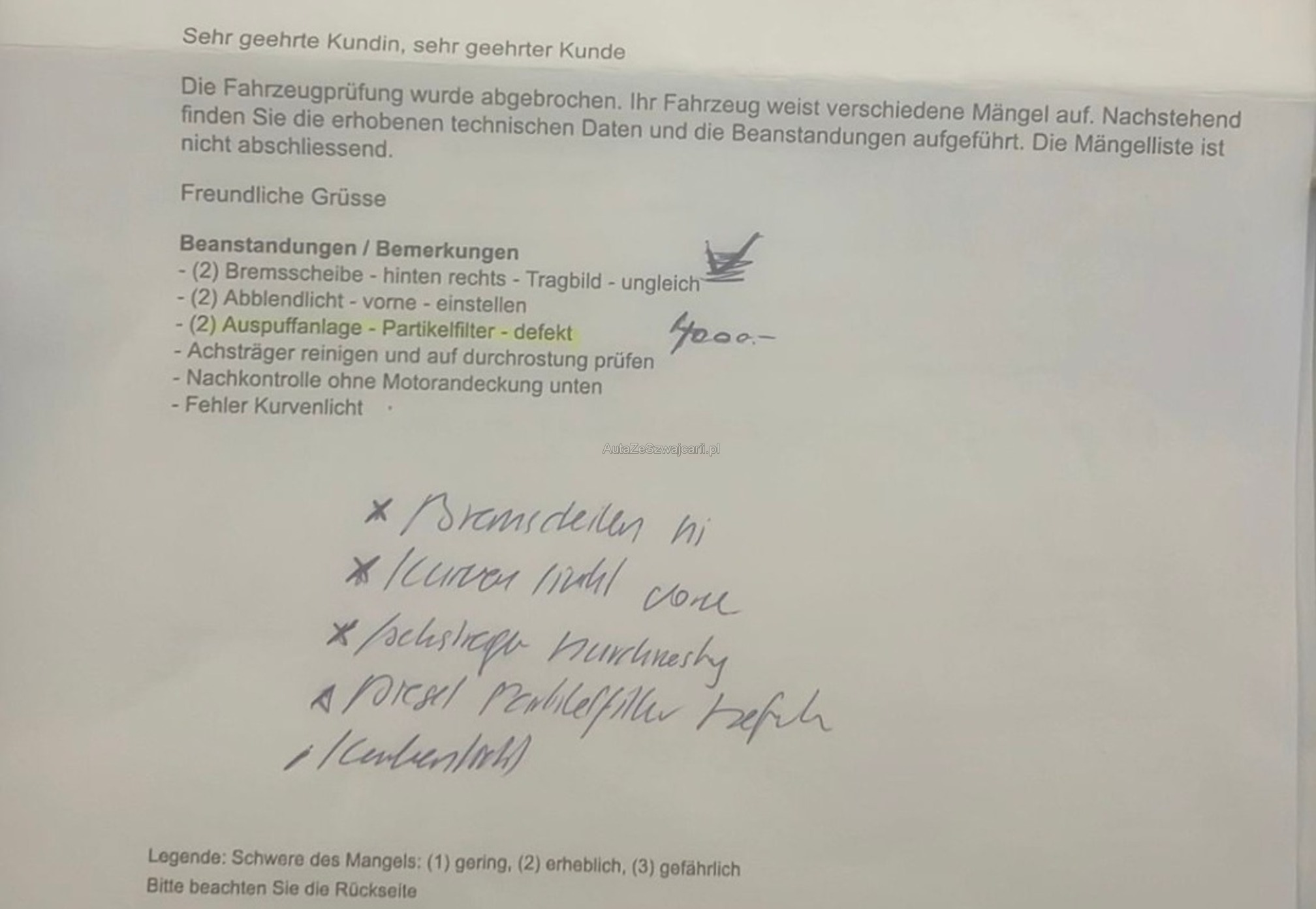 | Kommentar | Am Fahrzeug wurde kein Werkstatttest gemacht (Für sichtbare oder nicht sichtbare Mängel wird nicht gehaftet). Wir testen und kontrollieren nicht alle Funktionen vom Fahrzeug. Das Risiko liegt somit vollumfänglich beim Käufer. Um Missverständnisse zu vermeiden kann das Fahrzeug auf Voranmeldung besichtigt und getestet werden, sollten Sie davon bewusst kein Gebrauch machen dann liegt die Verantwortung bei Ihnen. Nachdem der Höchstbietende den Zuschlag erhalten hat, gibt es keine Nachverhandlung, auch wenn nicht deklarierte Mängel zum Vorschein kommen sollten. Ab Platz ohne Garantie, Wandelung und Minderung werden wegbedungen. She. letztes Bild Beanstandungen MFK. |
