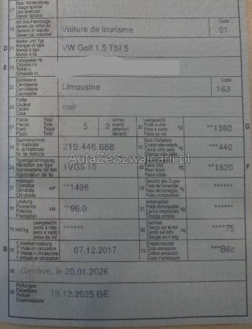 | Condition_and_Equipment | Demontage Persönliche Gegenstände oder Ladegut im Fahrzeug werden entfernt. Zustand Fahrzeug ist NICHT fahrbar. Fahrzeug ist rollbar. Schlüssel Nur ein Schlüssel vorhanden. Weitere wichtige Hinweise FAHRZEUG MIT 1 SCHLÜSSEL UND GRAUER KARTE. OHNE DIENSTBUCH. --- Rechts Rechte Seite beschädigt. Anstoss rechts im Bereich der A-Säule. Tür vorne rechts ist eingedrückt. Front Kotflügel vorne rechts eingedrückt. Radhaus vorne rechts eingedrückt / gestaucht. Achse Vorderachse ist beschädigt. Aufhängungsteile vorne rechts beschädigt. Lenkgetriebe ist beschädigt. Motoraufhängung/Aggregateträger ist beschädigt. Elektrik Risiko Steuergeräte. Risiko Scheinwerfer. Sonstige Schäden Div.Carrosserie Teile sind leicht beschädigt. Weitere Beschädigungen FAHRZEUG MIT 1 SCHLÜSSEL UND GRAUER KARTE. OHNE DIENSTBUCH. --- Serienaustattung Textilfussmatten vorne + hinten Höhenverstellbare Vordersitze Airbag Fahrer und Beifahrerseite Kopfairbag vorne und hinten Seitenairbag Fahrer und Beifahrerseite Lenksäule mit Höhen- und Längseinstellung Reifendruck-Kontrollsystem RDK Zentralverriegelung mit Funkfernbedienung Aussenspiegel elektrisch verstellbar und heizbar Klimaanlage Climatic/ halbautomatisch Elektrische Fensterheber vorne Komfortsitze vorne Lendenwirbelstützen Vordersitze Deaktivierung Beifahrerairbag Mittelarmlehne hinten m. Durchladesystem Elektrische Fensterheber hinten Mittelarmlehne vorne mit Ablagebox Rücksitzbank ungeteilt/ Lehne 1/3 zu 2/3 geteilt umklappbar ESP inkl. Bremsassistent/ ABS/ ASR/ EDS Isofix Kindersitzverankerung für Rückbank Leichtmetallräder 16" Toronto Servolenkung elektromechanisch u. geschwindigkeitsabhängig Automatische Distanzregelung ACC/ Front Assist Nebelscheinwerfer vorne/ Abbiegelicht Knieairbag Fahrer Tire mobility system LED Heckleuchten Multifunktions-Lederlenkrad 3-Speichen Multifunktionsanzeige Premium Müdigkeitserkennung Keine Gewähr auf die Angaben der Serienausstattungen Proaktives Insassenschutzsystem Pack Licht und Sicht Digitaler Radioempfang DAB+ Fahrprofilauswahl Radiosystem Composition Media Security & Service/ Notruf VSSP Volkswagen Swiss Service Package 4 Jahre/ 100'000 km Stop + Start System Sonderausstattung Rückfahrkamera Pack Winter Pack Spiegel Blind Spot Sensor/ Parkassistent Active Info Display |