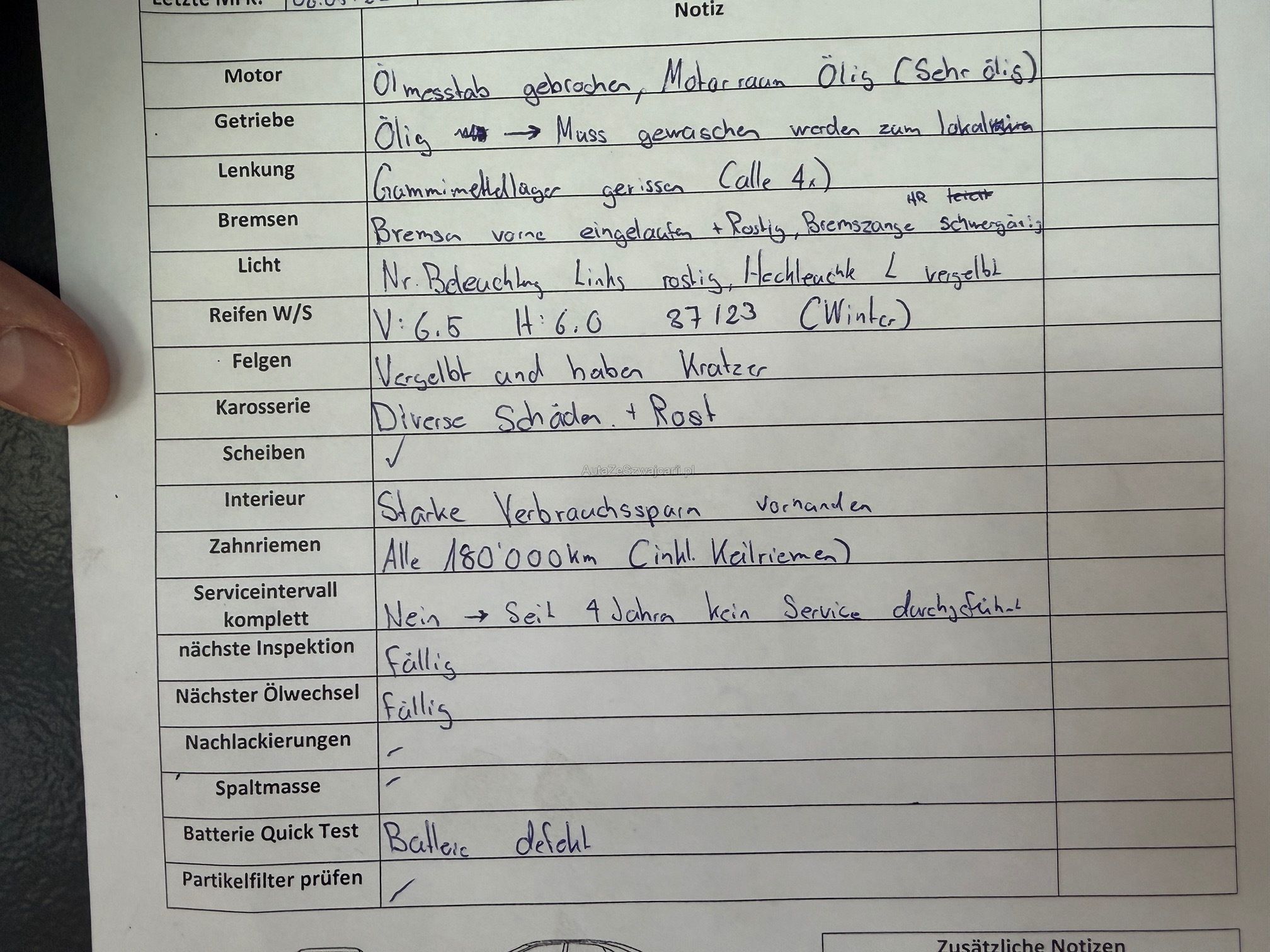| Kommentar | FHZ ist noch im Kundenbesitz Siehe Bilder und Werkstatttest. Alle festgestellte Mängel im Eintauschtest sichtbar |