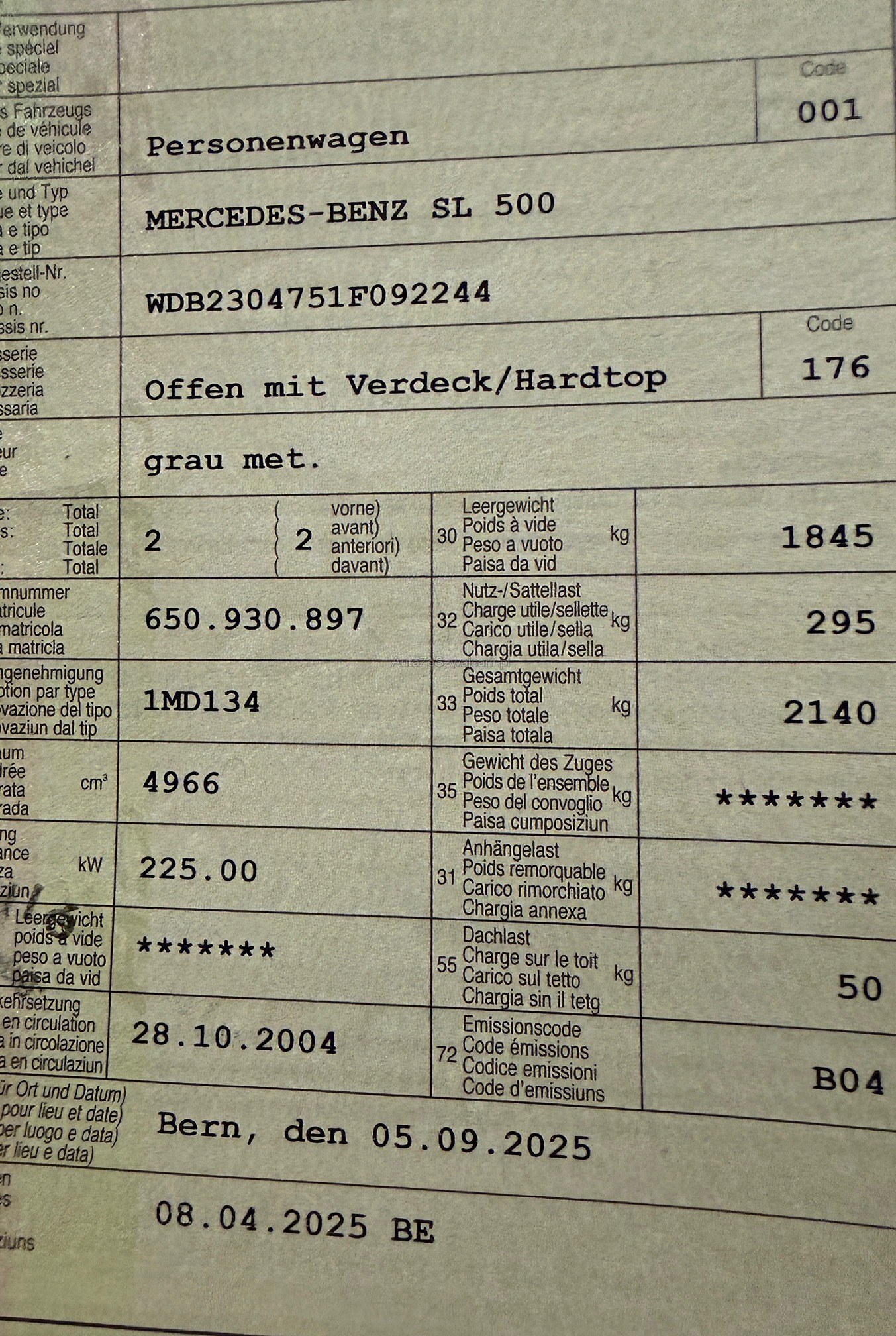 | VIN | WDBXXX |