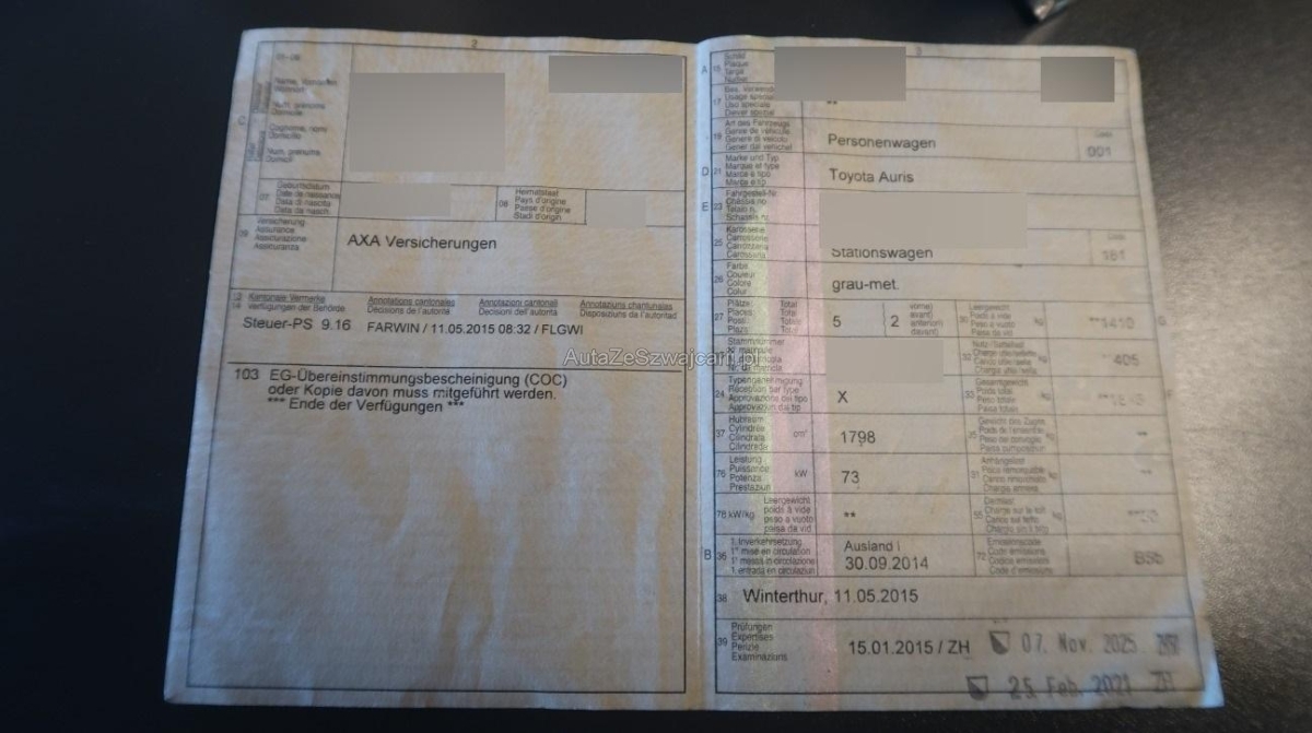 | Fahrzeugausweis | Vorhanden |