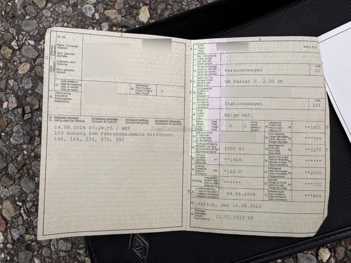 | Fahrzeugausweis | Vorhanden |