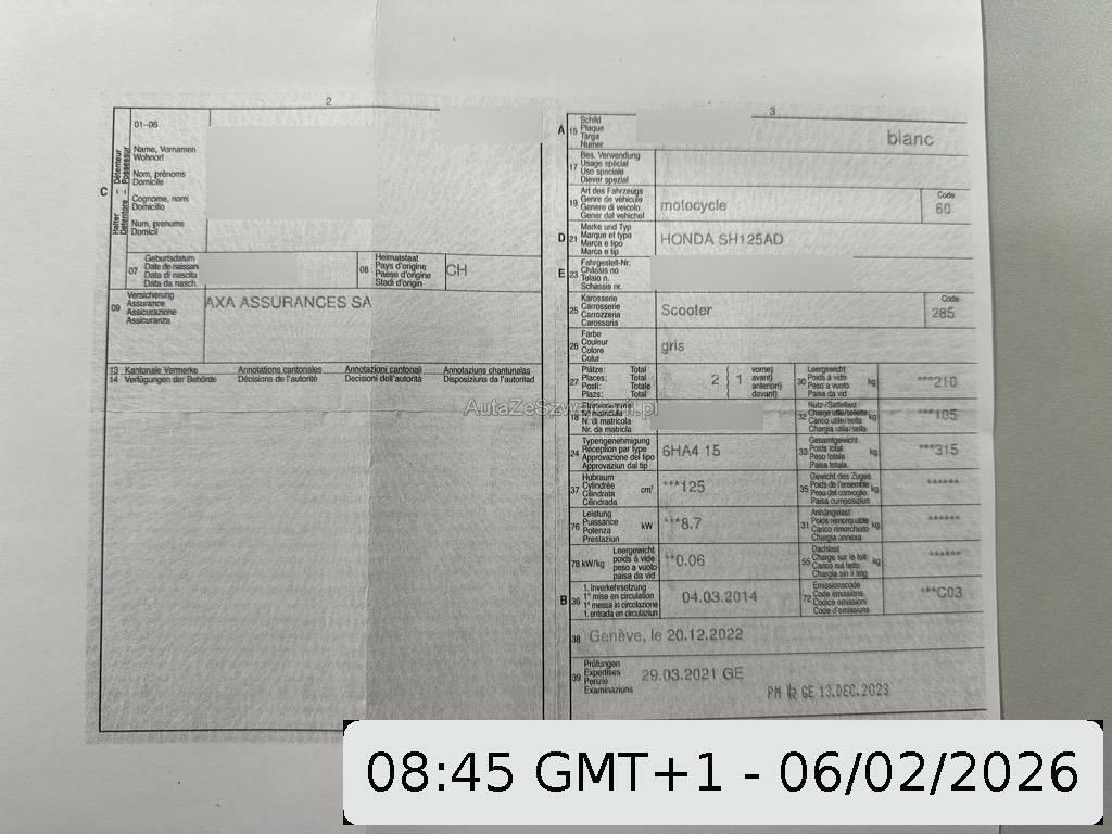 | Fahrzeugausweis | Vorhanden |