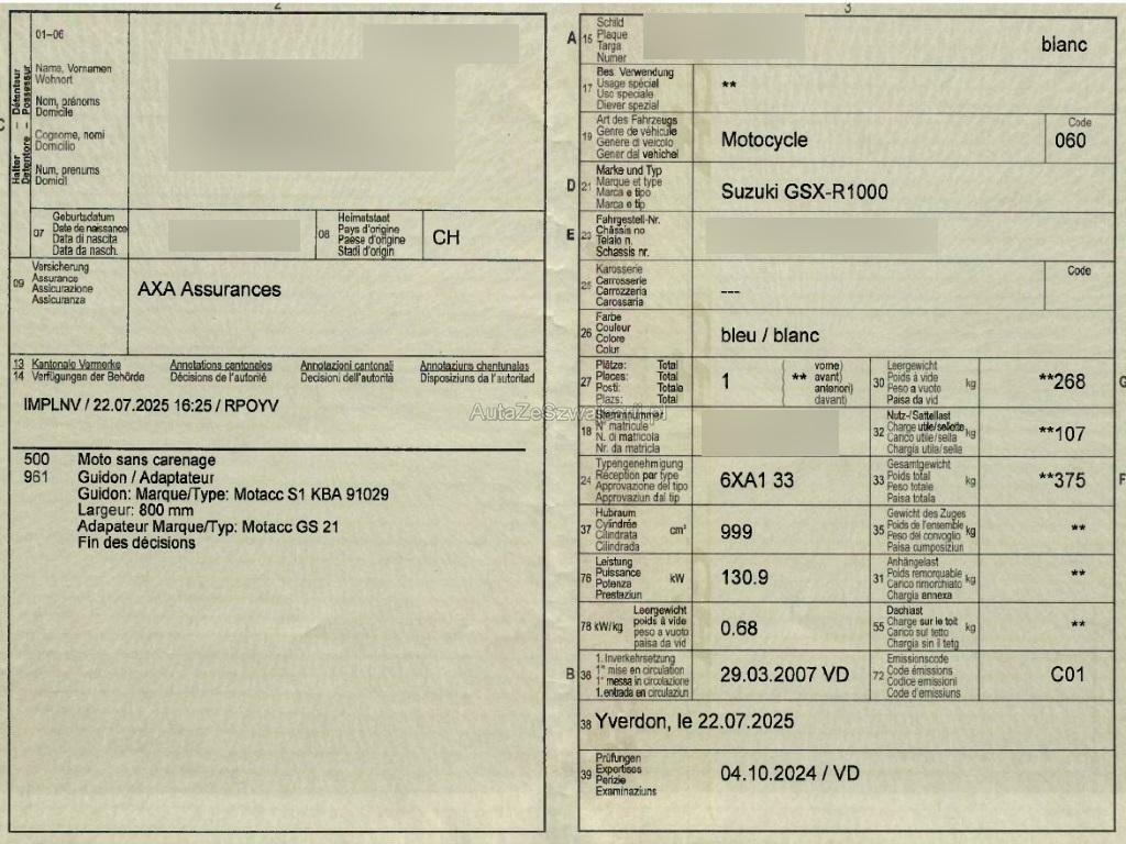 | Fahrzeugausweis | Vorhanden |