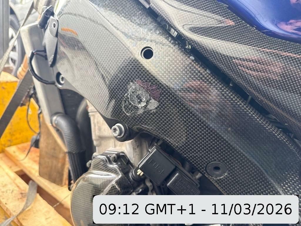 | Beschädigungen | Armaturen, Auspuffkollektor, Auspufftopf, Aussenspiegel links, Aussenspiegel rechts, Front, Fussraster links, Fussraster rechts, Gabelholm, Griff links, Griff rechts, Heck, Heckverkleidung, Kabelstrang, Kühler, Lenkanschlag, Lenker, Lenkschloss, Rad hinten, Rad vorne, Rahmen, Rücklicht, Scheinwerfer, Schutzblech hinten, Schutzblech vorne, Seite links, Seite rechts, Sitz, Tank, Verschalungen links, Verschalungen rechts, Verschalungen vorne, Windschutzscheibe, Zündschloss |