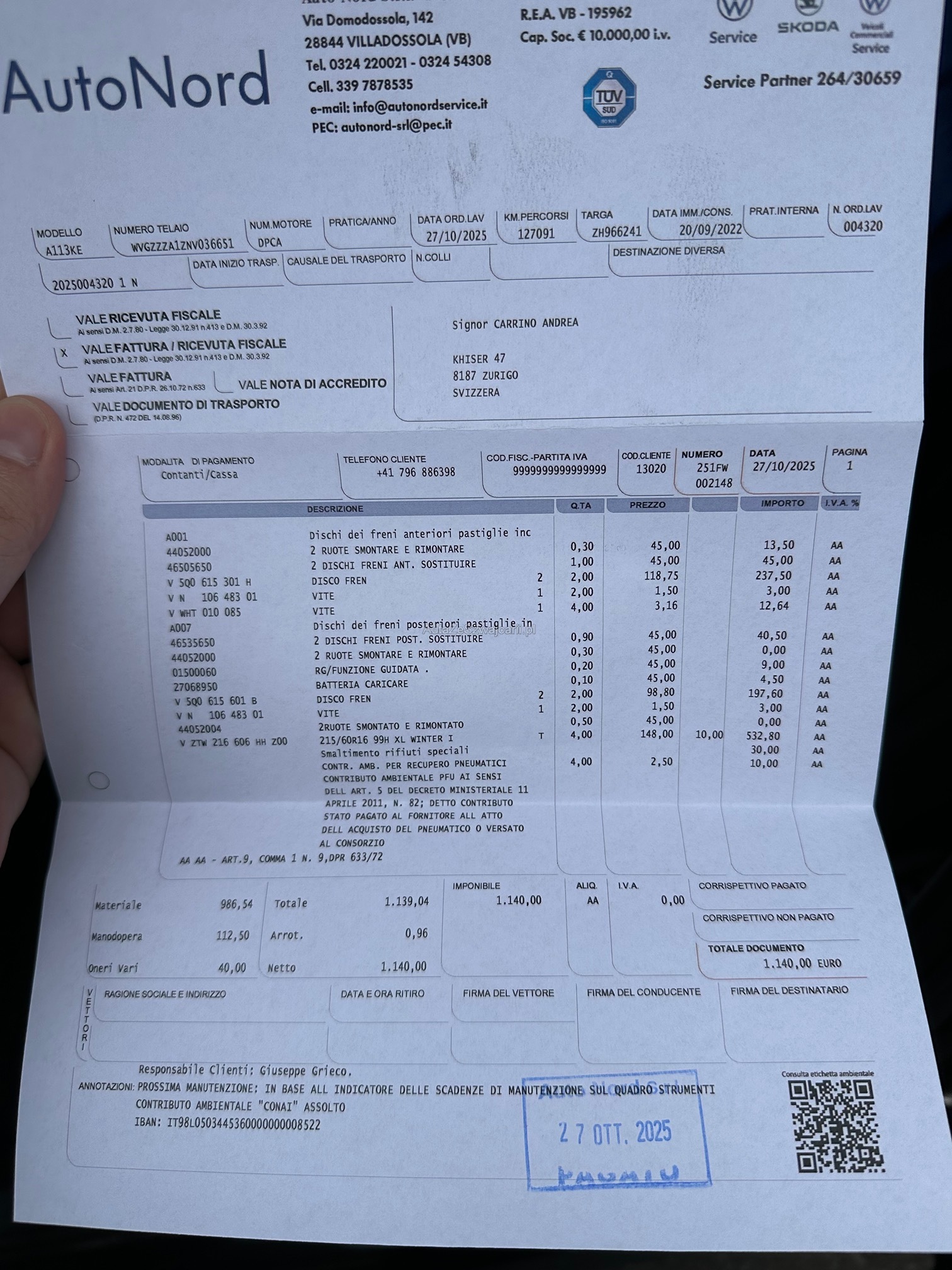 | Vordere Bremsen müssen ersetzt werden | No |