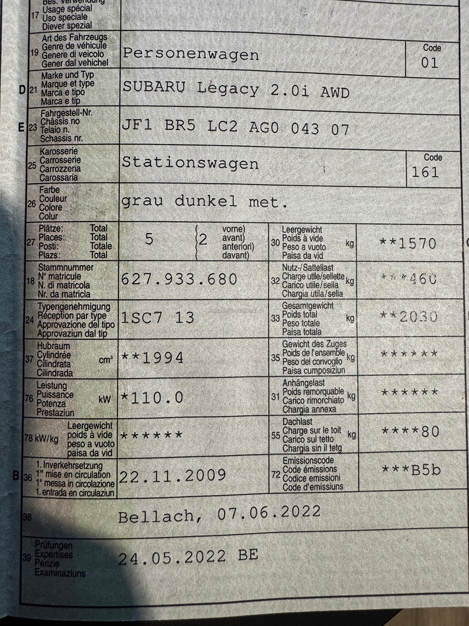 | Kommentar | Kein Werkstatttest durchgeführt Vorbesitzerin alte Dame, Regelmässig gewartet, Parksensoren und Display wurden nachgerüstet |