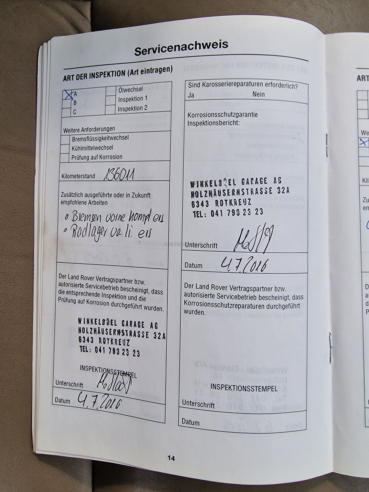 | Vordere Bremsen müssen ersetzt werden | No |