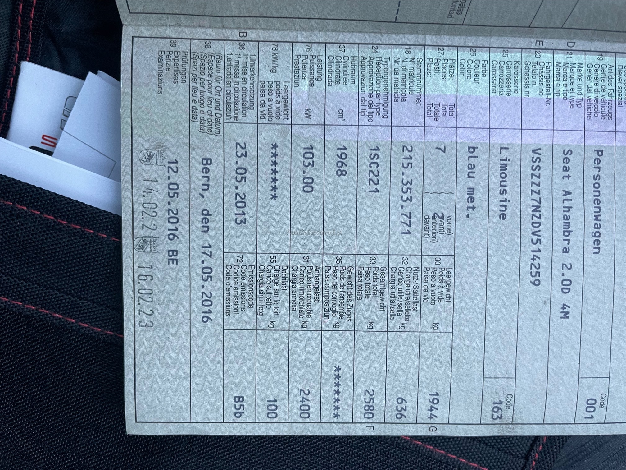 | Kommentar | Gebrauchter Alhambra Nox Katalysator und Navi wurde erst vor kurzem ersetzt. Diverse Gebrauchsspuren vorhanden ab Platz keine Garantie |