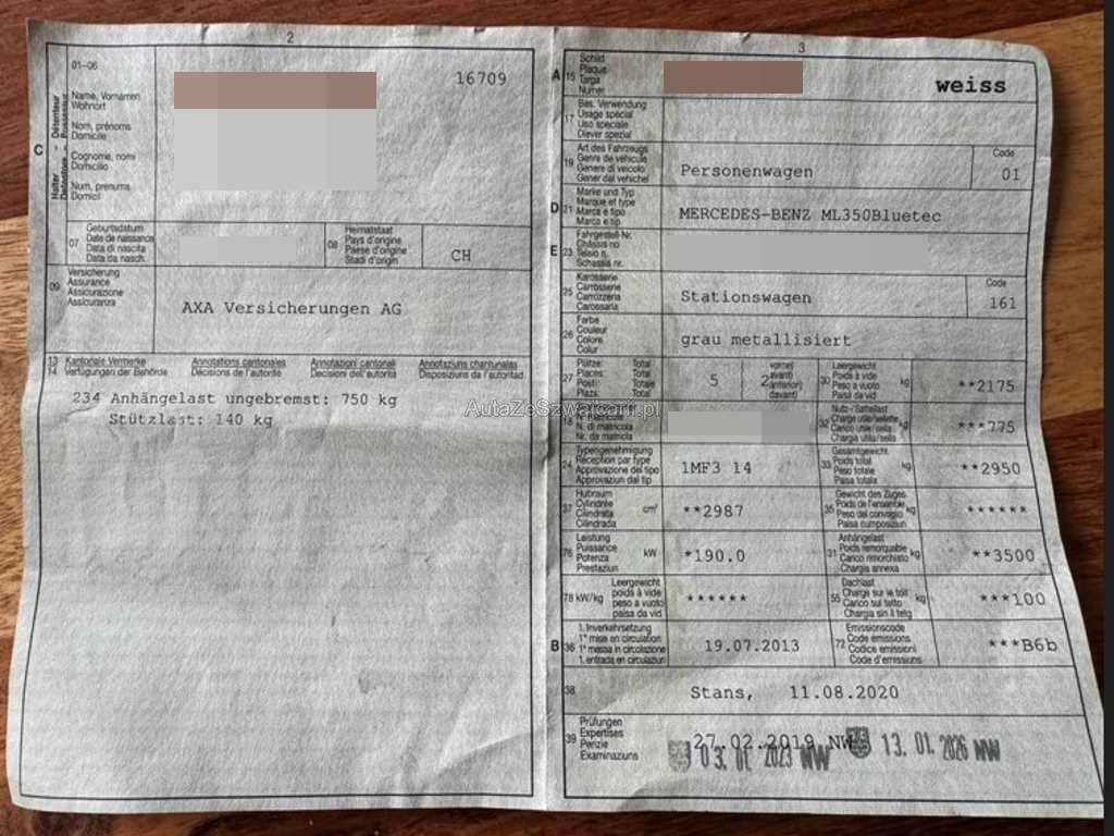 | Fahrzeugausweis | Vorhanden |