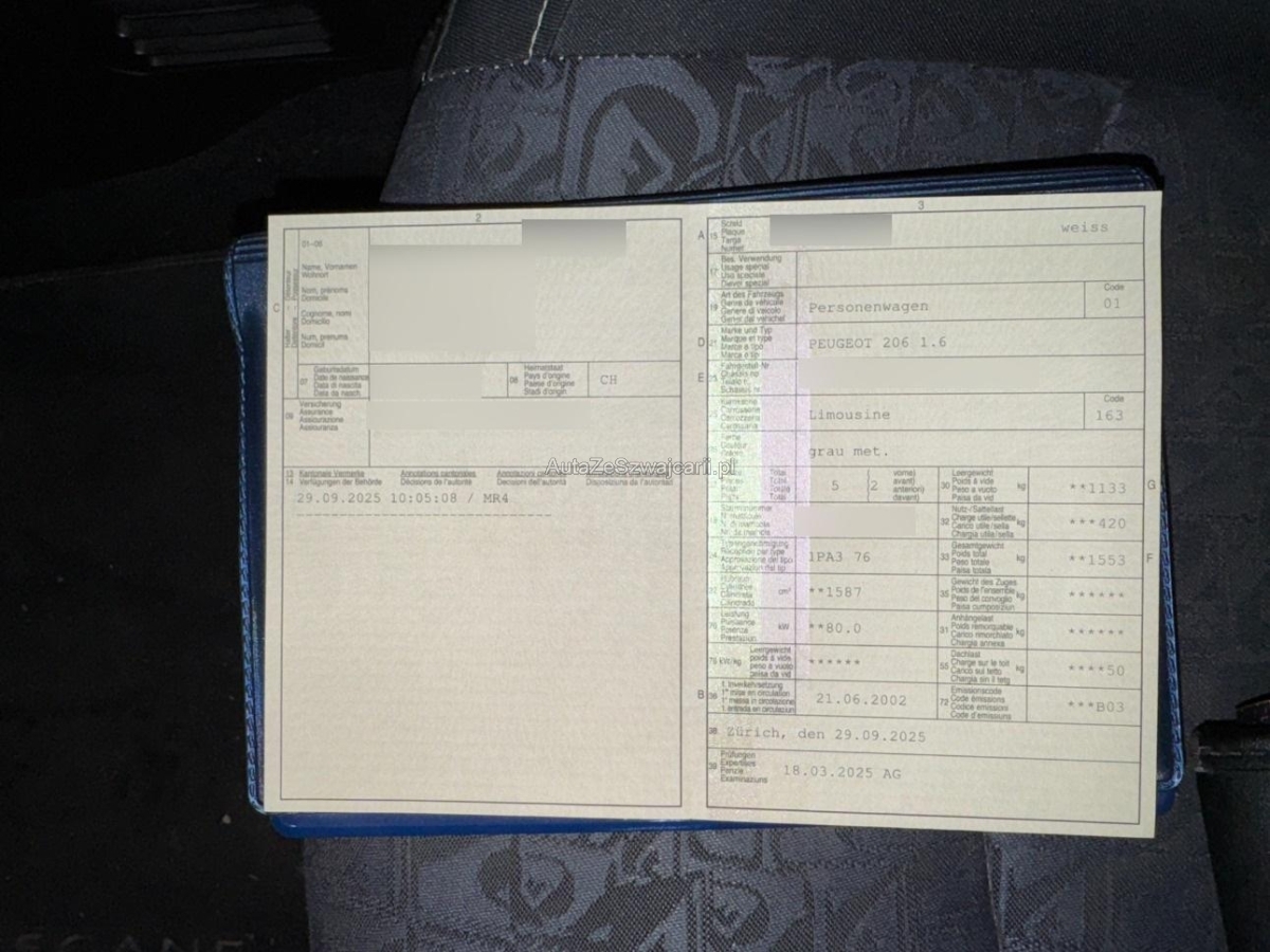 | Fahrzeugausweis | Vorhanden |