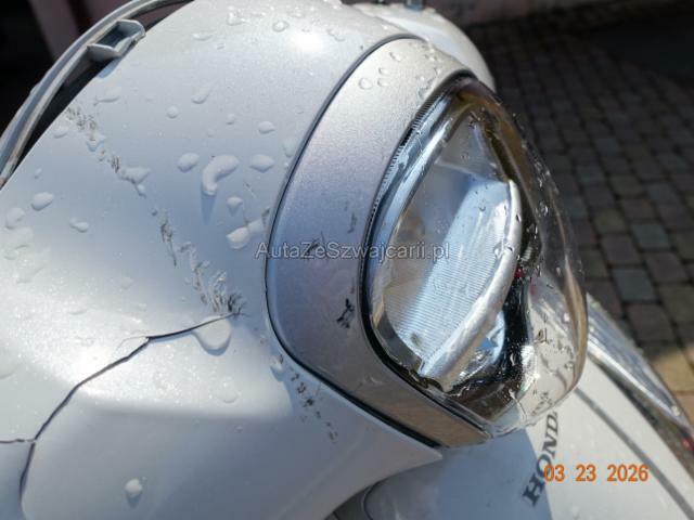 | Condition_and_Equipment | Zustand Fahrzeug ist fahrbar. Zweirad-Kategorie Roller --- Links Verschalung unten links verkratzt. Rechts Verschalung oben rechts gebrochen. Verschalung unten rechts gebrochen. Front Schutzblech vorne defekt. Gabel beschädigt. Weitere Beschädigungen Scheinwerfer gerieben |