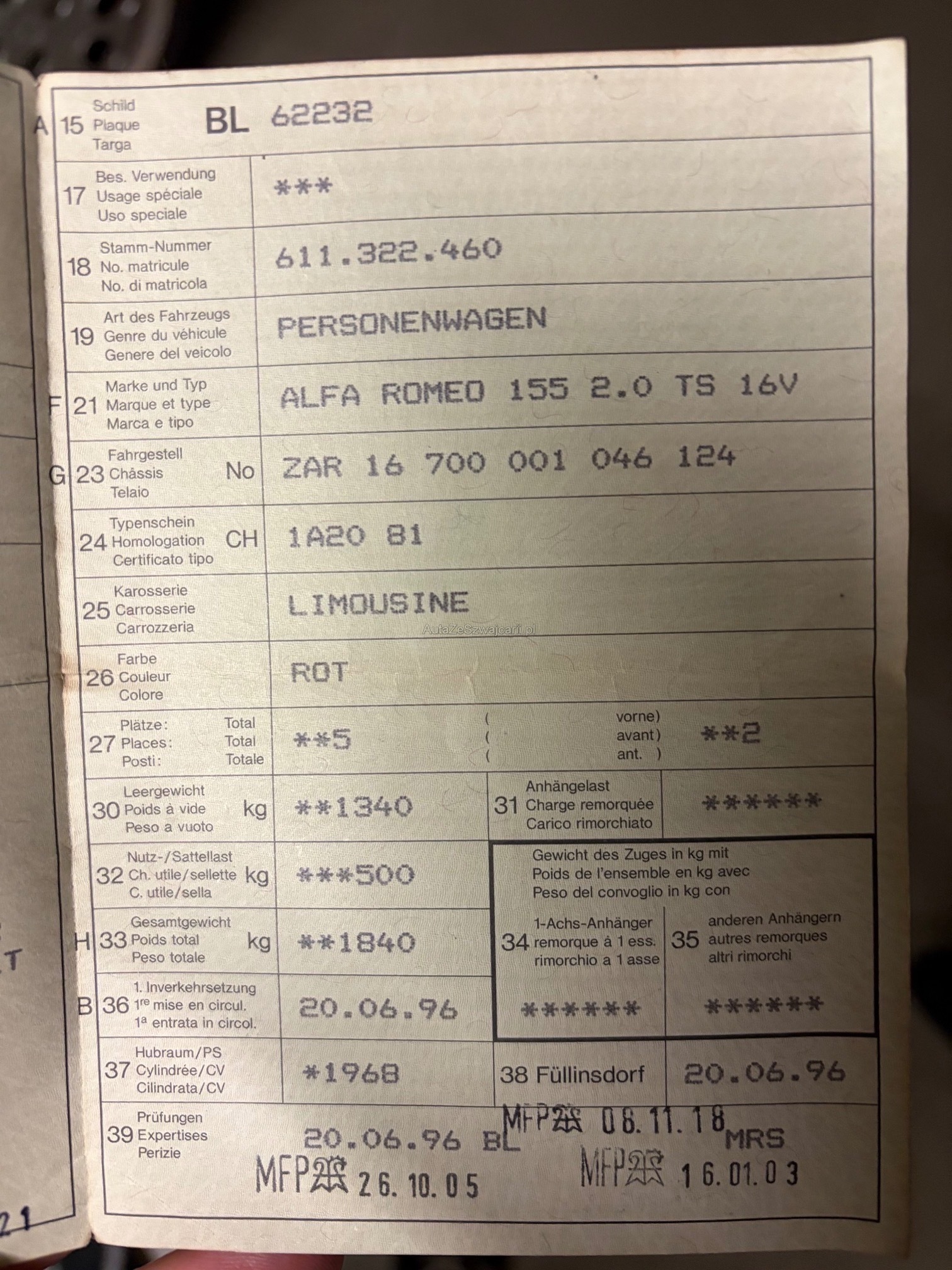 1. rejestracja: 20 czerwca 1996