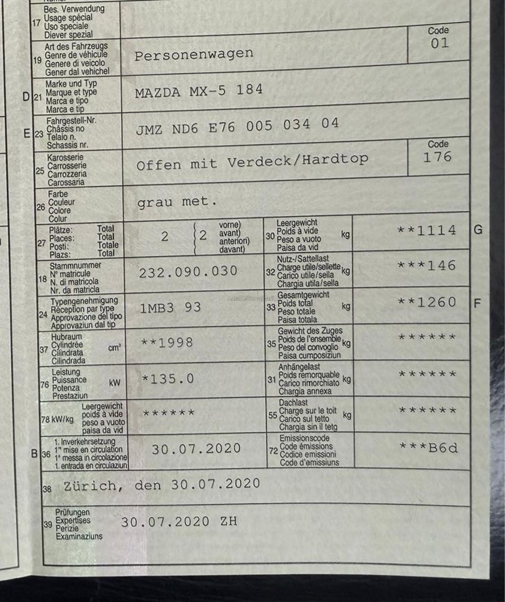 | VIN | JMZXXX |
