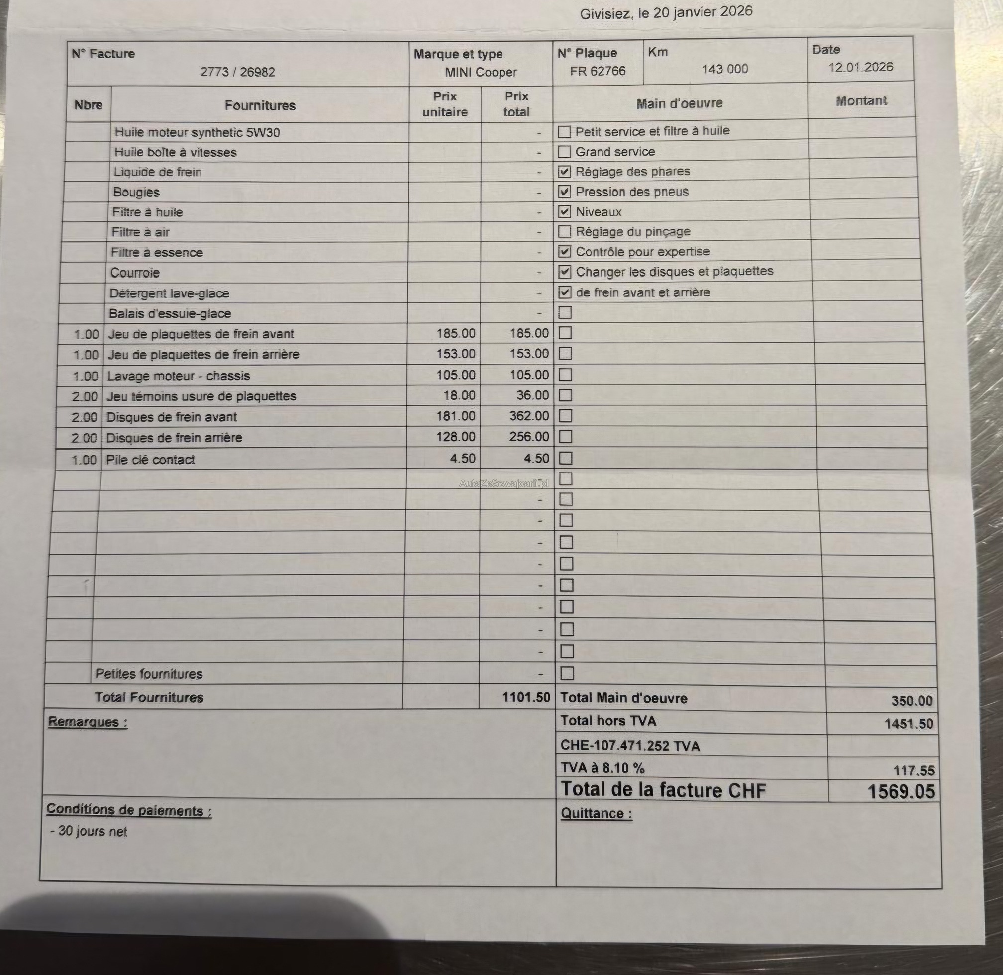 | Kommentar | Carrosserie hat etliche Kratzer (siehe Bilder), Siehe auch Rechnung betreffend Expertisenvorbereitung von Januar 2026 |