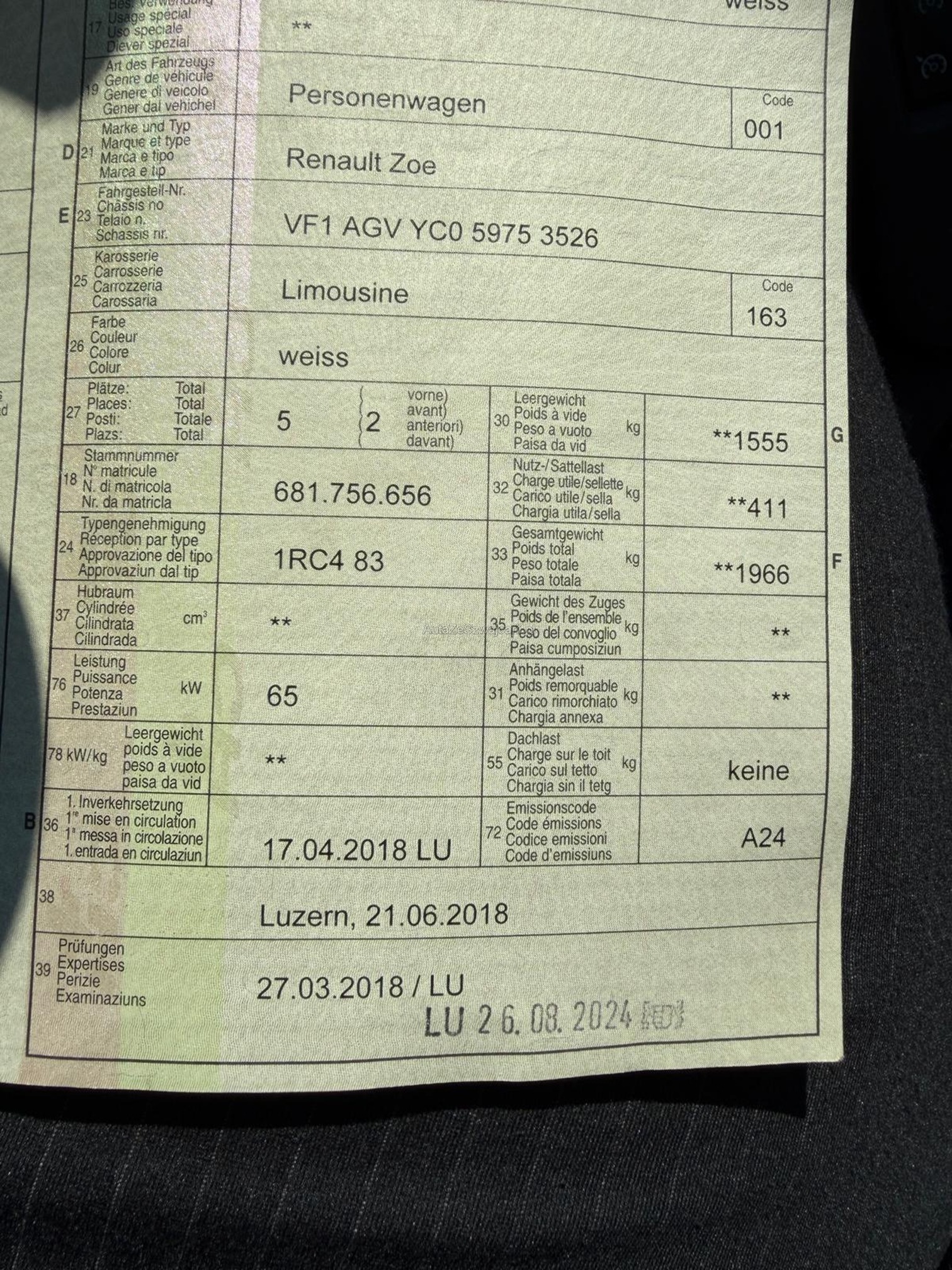 | Kommentar | renault zoe batterie gekauft nicht miete Bei diesem Renault ZOE wurde ein Defekt am elektrischen Hochvolt-Klimakompressor festgestellt. Gemäss Diagnose liegt ein interner mechanischer Schaden am Kompressor vor. Die Klimaanlage ist ausser Betrieb. Da die Heizung bei diesem Modell über das Klimasystem gesteuert wird, ist auch die Heizfunktion aktuell ohne Funktion. Es ist davon auszugehen, dass sich Verunreinigungen im Kältekreislauf befinden. Eine fachgerechte Instandsetzung erfordert voraussichtlich den Austausch des Hochvolt-Klimakompressors sowie weiterer Komponenten des Klimasystems. Das angebotene Fahrzeug wird ab Platz ohne Garantie und ohne jegliche Nachgewährschaft verkauft. Es handelt sich dabei um ein Eintausch Fahrzeug der Garage Galliker AG welches div. Gebrauchsspuren und Mängel aufweist. Es wurde keine technischen Prüfung durchgeführt. Jede Gewährleistung, soweit nach Gesetz möglich, wird wegbedungen, insbesondere sind Wandelung und Minderung ausgeschlossen. Fahrzeug kann gegen Voranmeldung besichtigt und Probe gefahren werden. |
