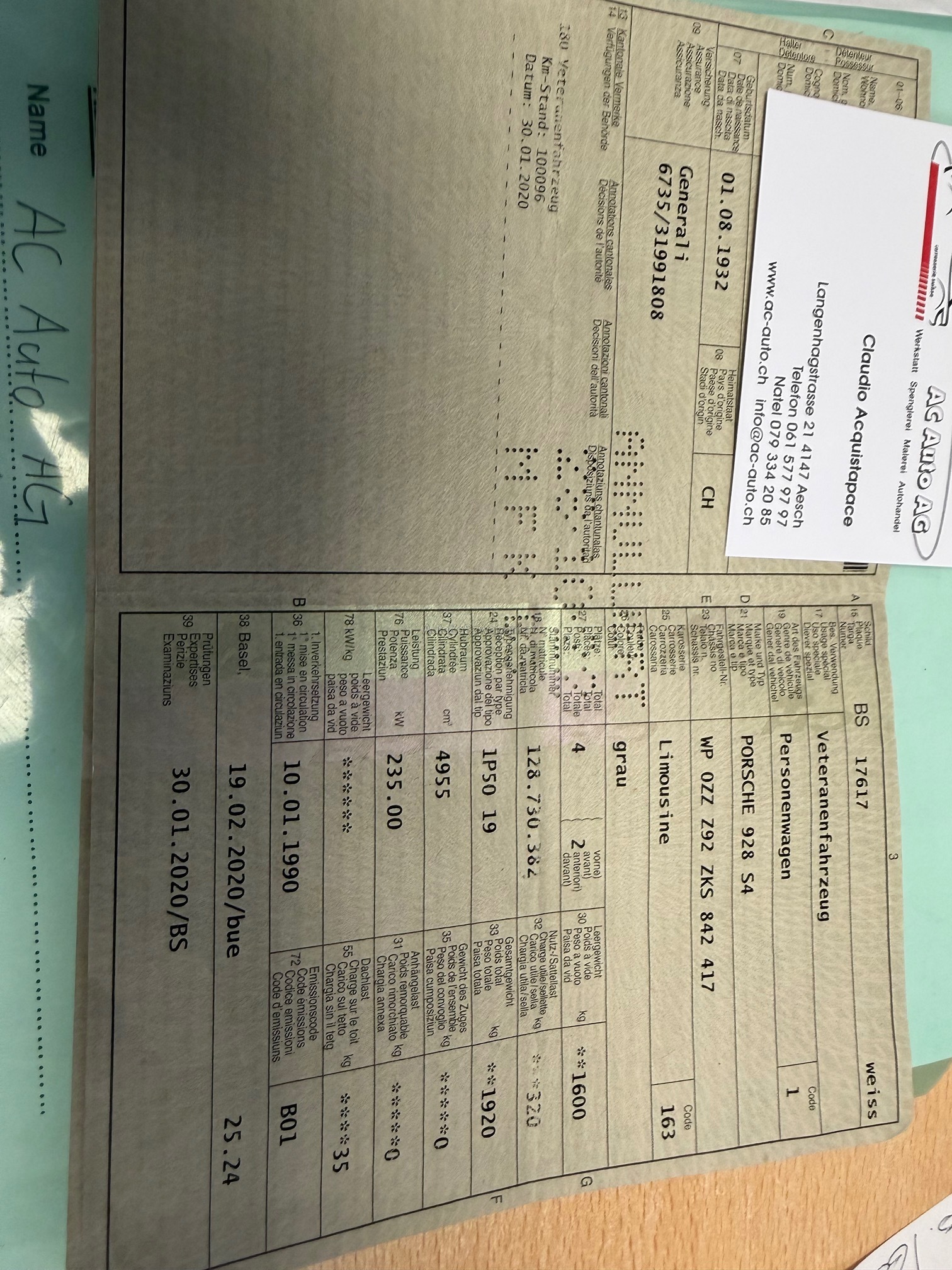 | Kommentar | Frisch ab Service inkl Zahnriemen - frisch ab MFK inkl. Veteran Fr. 1‘800.- Aufpreis |