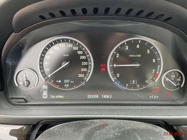 | Serienausstattung | 12-Volt-Steckdose hinten, 12-Volt-Steckdose vorne, 2-Zonen-Klimaautomatik, Abschliessbare Radschrauben, Airbag: Airbag Fahrer und Beifahrer, Airbag: Seitenairbag für Fahrer und Beifahrer, Aktive Kopfstützen, Allradantrieb permanent, Antiblockiersystem (ABS), Assist: Anfahrassistent, Assist: Crash-Sensor, Assist: Tempomat mit Bremsfunktion, Aussenspiegel rechts und links beheizt und elektrisch verstellbar, asphärisch gewölbtes Spiegelglas, Aussentemperaturanzeige, Ausstiegsleuchten in den Türen vorn, Aux-In Anschluss, Befestigungsösen im Laderaum, Beide Make up-Spiegel beleuchtet, Bordcomputer, Bremsassistent (BAS), Bremsbelag-Verschleissanzeige, Bremsenergie-Rückgewinnung, Check-Control-System, Chrom-Line Exterieur, Cupholder vorne und hinten, Drehzahlmesser, Drittes Bremslicht, Dynamische Bremsleuchten, Dynamische Stabilitätskontrolle (DSC), Einstiegsschienen, Elektrische Fensterheber vorne + hinten, Elektronische Parkbremse, Frontscheibe Verbundglas, Getriebe: 8-Stufen-Automat Steptronic, Gurtstraffer vorne, Hill Descent Control (HDC), ISOFIX Kindersitzvorrichtung, Info-Display, Innenspiegel automatisch abblendbar, Interieurleisten in schwarz, Kartentaschen an den Rückenlehnen, Katalysator geregelt, Lackierung: Uni-Lackierung, Leder-Multifunktionslenkrad im 3-Speichen-Design, Leichtmetallräder V-Speiche 236, 17J, Lenkrad: Lenkrad längs- und höhenverstellbar, Leseleuchten vorne, Leuchtweitenregulierung von innen, Licht: Nebelschlussleuchte, Lichtwarnsummer, Mittelarmlehne hinten, Motor Start-/Stop-Anlage, Nebelscheinwerfer, Nichtraucherausführung, Radio BMW Professional, Radiovorbereitung, Antenne, Entstörung und 6 LS, Räder: Reifendruck-Kontrollanzeige, Scheibenwaschdüsen beheizt, Scheibenwischer vorne mit Regensensor und automatischem Einschalten der Abblendlichter, Servotronic, Sitzbelegungserkennung für Beifahrersitz, Sonnenschutzverglasung, Start-/Stop-Knopf, Stoff-Ausstattung Diagonal, Stossstangen, Aussenspiegel und Türgriff in Wagenfarbe, Umgebungsausleuchtung (Follow me home), Veloursfussmatten, Vordersitze elektrisch verstellbar, Fahrersitz mit Memory-Funktion, Wegfahrsperre elektronisch, Window-Kopfairbags, Zentralverriegelung mit Fernbedienung, Zusätzliche 12V Steckdosen, iDrive-System |