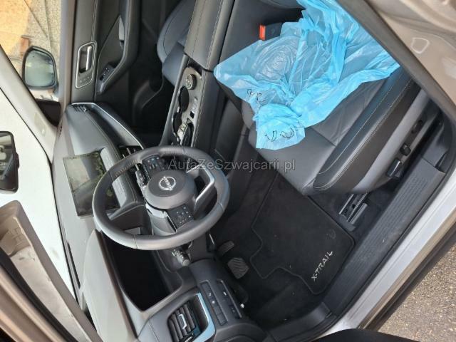 | Condition_and_Equipment | Bereifung Fahrzeug wird mit Winterräder abgegeben. Schlüssel Nur ein Schlüssel vorhanden. --- Elektrik Risiko Steuergeräte. Weitere Beschädigungen Am Fahrzeug Nissan X?Trail wurde die Frontscheibe ersetzt. Nach dem Austausch zeigte sich, dass die Scheibe nicht fachgerecht und nicht vollständig dicht eingebaut wurde. Durch die unzureichende Abdichtung kam es zu einem Wassereintritt im vorderen Fahrzeugbereich. Der eingedrungene Wasserfluss führte zu einer Beeinträchtigung der elektrischen Systeme, insbesondere im Bereich der Hochvoltkomponenten. Infolge der Durchfeuchtung reagierten die Hochvoltbatterie sowie weitere elektrische Steuergeräte und Komponenten nicht mehr. Das Fahrzeug lässt sich seit dem Wassereintritt nicht mehr starten bzw. hochfahren, und die Hochvoltanlage bleibt inaktiv. --- Serienaustattung Airbag Fahrer und Beifahrerseite Sitzheizung vorne Elektrische Fensterheber vorne + hinten ESP Elektronisches Stabilitätsprogramm Lederlenkrad Innenspiegel automatisch abblendbar Scheibenwischer mit Regensensor Leichtmetallfelgen 18" Park-Distanz-Sensor vorne + hinten Lichtsensor Aussenspiegel elektrisch verstellbar/ heizbar und anklappbar Rücksitze geteilt umklappbar 60/40 Kindersitz-Vorbereitung Isofix Lenkrad beheizbar Dunkelgetönte Scheiben hinten Intelligent Key-System Zwei Zonen-Klimaautomatik Rückfahrkamera Vorhangairbags ABS/ EBD Sonnenschutzrollo für Seitentüren hinten Seitenairbags Dachreling silber Sitzheizung 2. Reihe Elektr. Lendenwirbelstütze Fahrersitz Berganfahrhilfe Fernlichtassistent Bluetooth Interface/ Schnittstelle Reifendruck-Sensoren TPMS LED-Scheinwerfer LED Tagfahrlicht USB-Anschluss Details siehe gültige Preisliste des Importeurs Keine Gewähr auf die Angaben der Serienausstattungen 360° Kamera Audiosystem mit DAB+ Wireless Charging für mobile Geräte Apple Car Play/ Android Auto Ottopartikelfilter Navigation Nissan Connect USB-C Anschluss Center Airbag vorne Pack Fahrerassistenz Sonderausstattung Metallic-Lackierung Ausstattung Metallic-Lackierung |