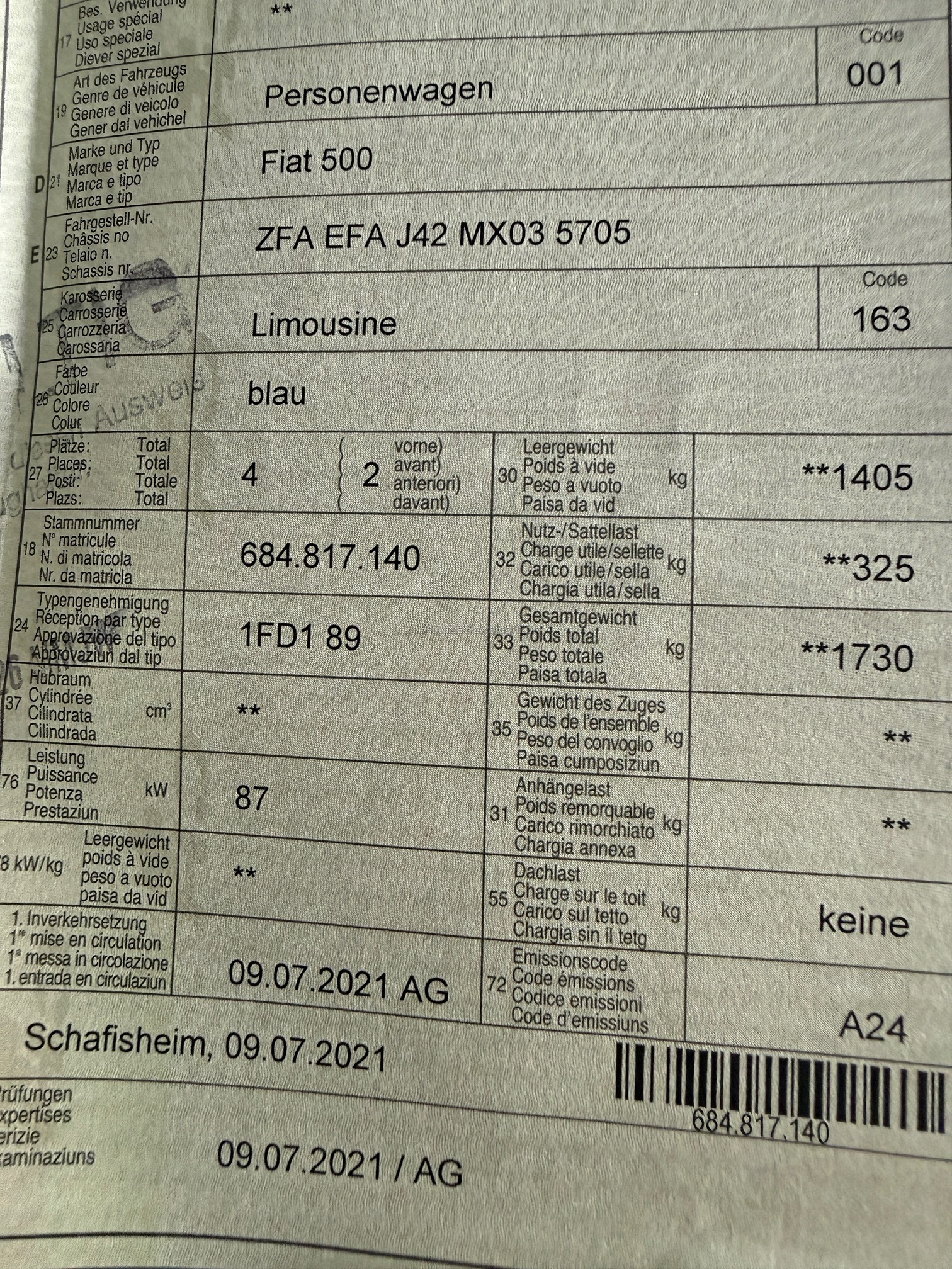 | VIN | ZFAXXX |