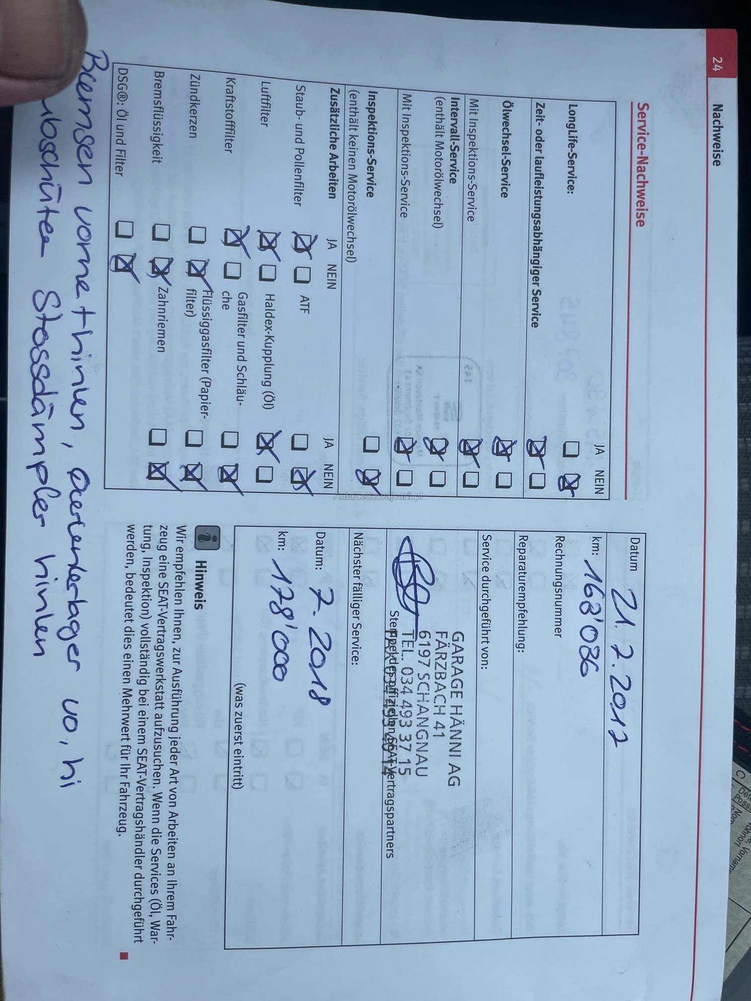 | Hintere Bremsen müssen ersetzt werden | No |