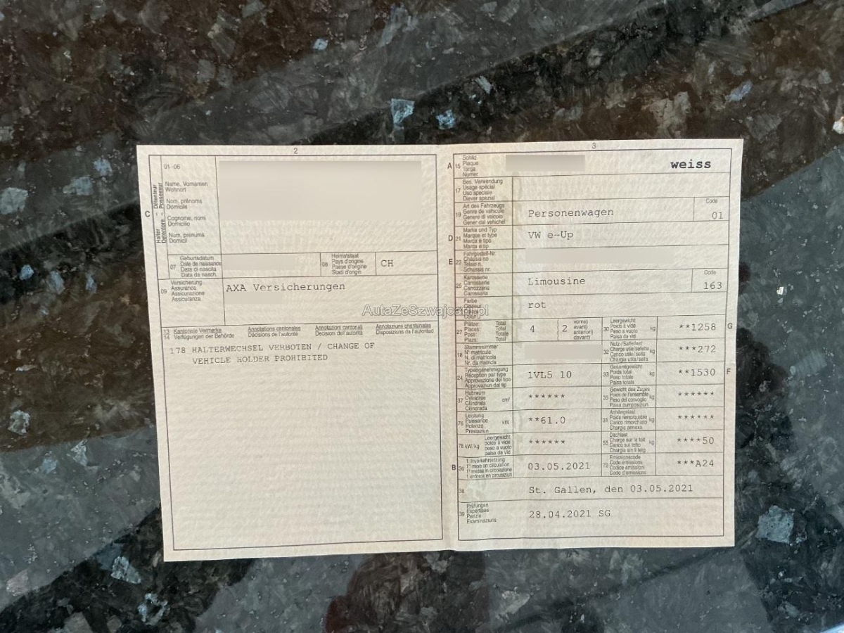 | Fahrzeugausweis | Vorhanden |