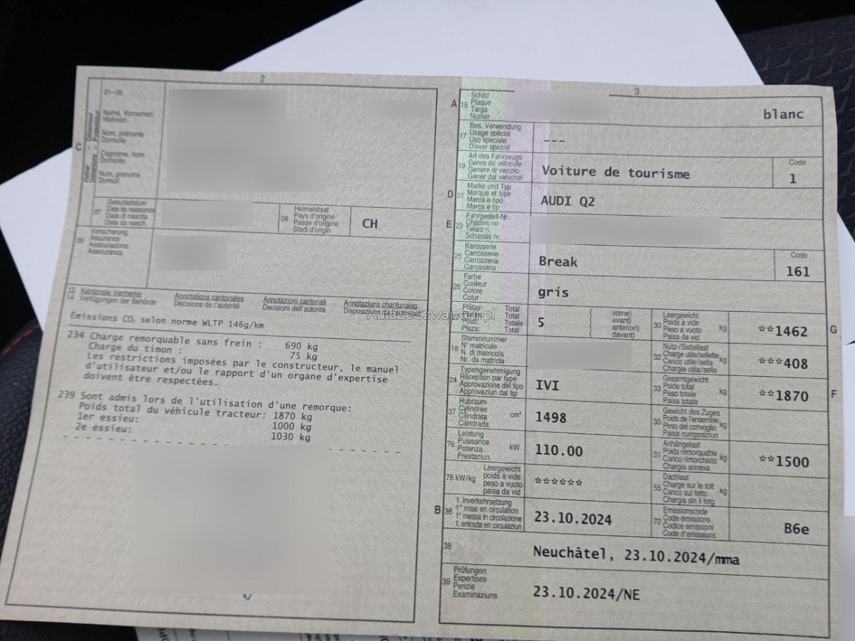 | Fahrzeugausweis | Vorhanden |