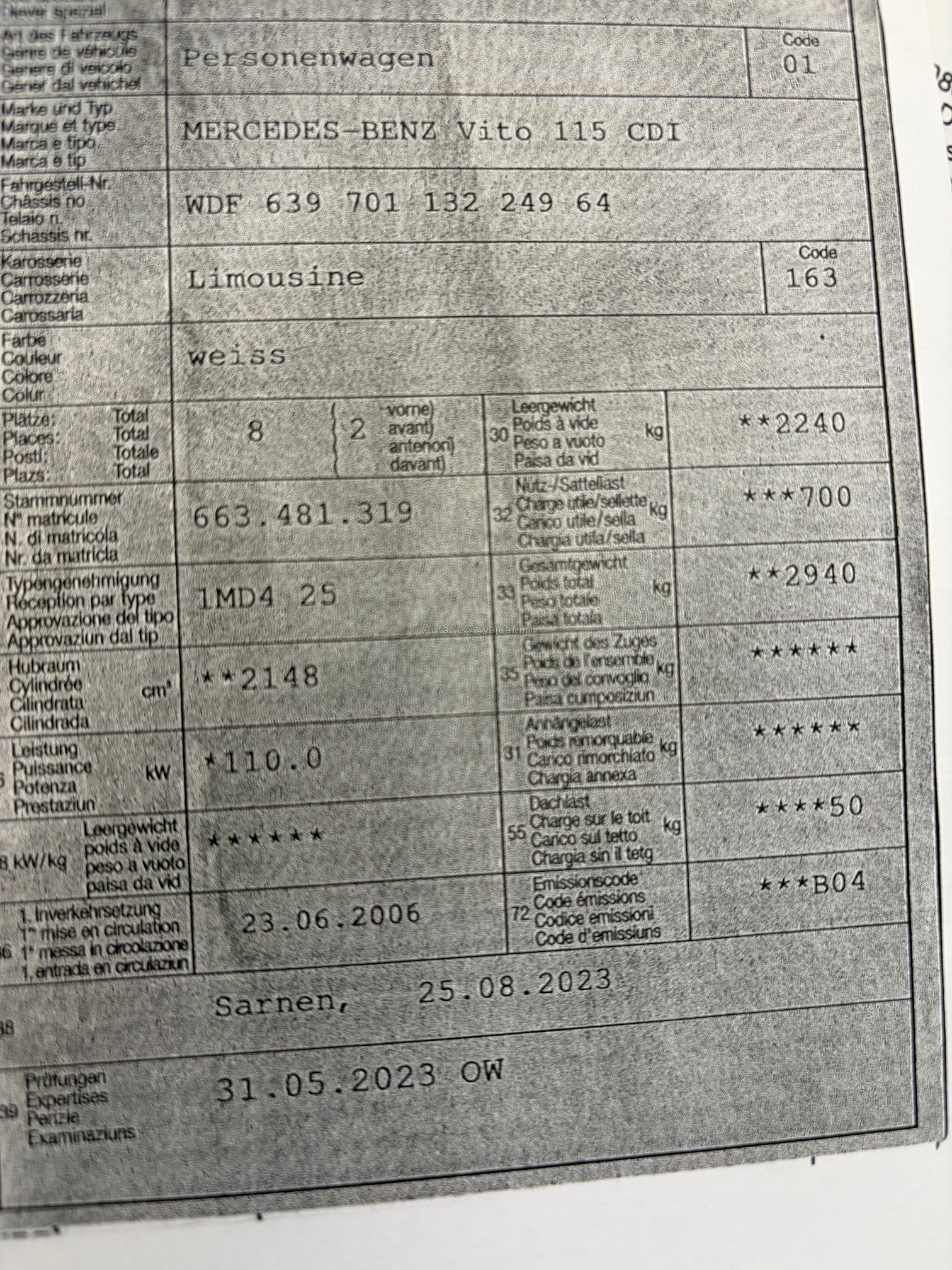 | Kommentar | nur 5 Sitzplätze! Zustand gemäss Bilder, fährt einwandfrei. MFK Mängel gemäss Anhang, keine technische Prüfung von uns gemacht. Keine Garantie, Gewährleistung oder Nachwährschaft. Wandelung und Minderung ausgeschlossen. |