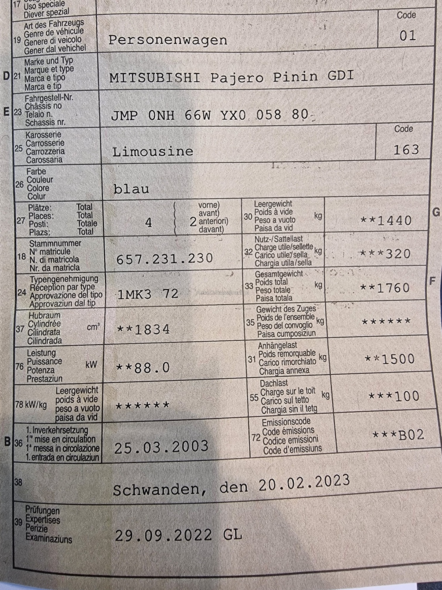 | Kommentar | CHF 3'000.- wurde Rost gemacht / in gutem Zustand / Service gepflegt / mit Anhängekupplung |