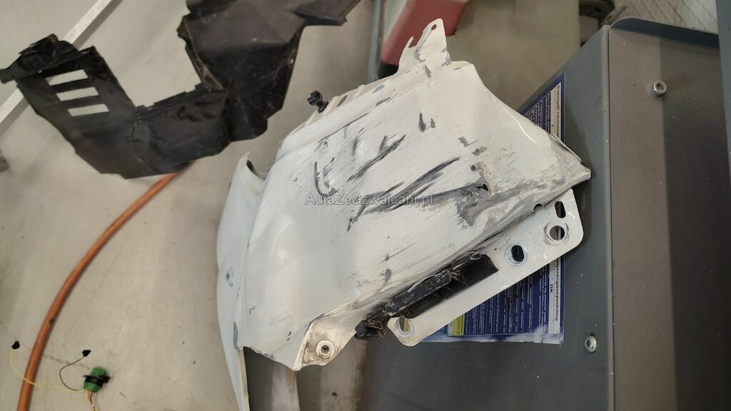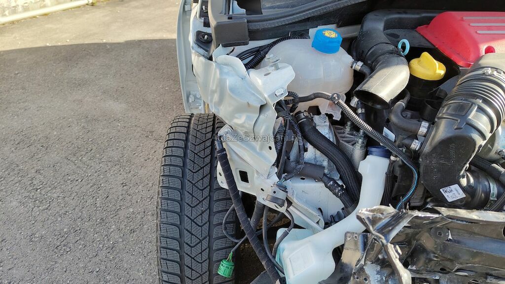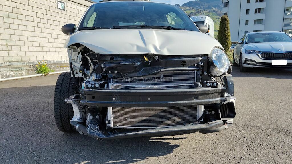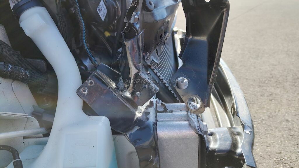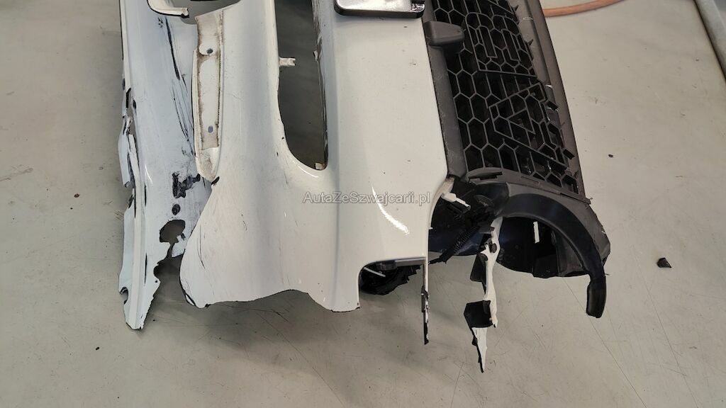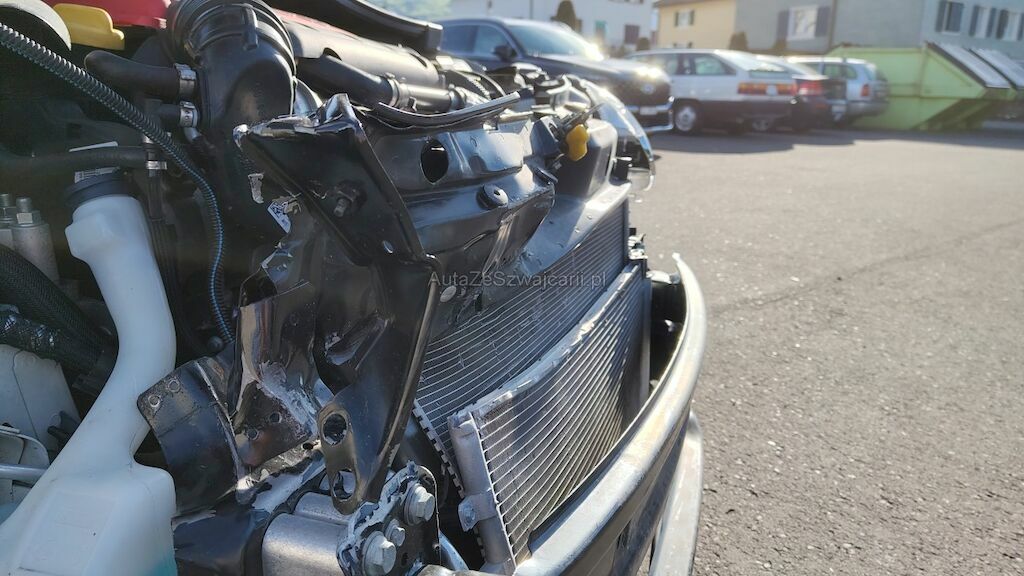 Frontschaden rechts: Stossstange, Motorhaube, Kotflügel, Scheinwerfer, Schlossträger, alle Kühler, Turboladergehäuse, diverse Kabel und Stecker, Stehblech, Felge beschädigt.