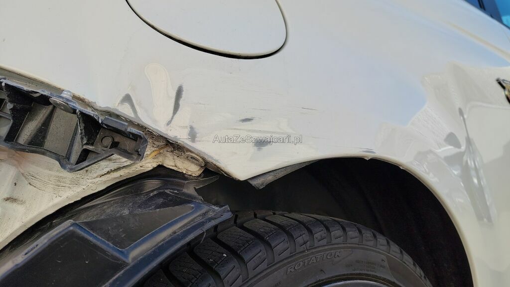 Heckschaden rechts: Seitenwand deformiert und zerkratzt, Stossstange eingedellt und zerkratzt Felge zerkratzt.