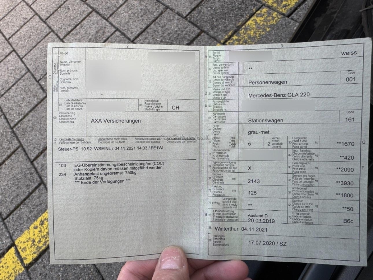 | Fahrzeugausweis | Vorhanden |