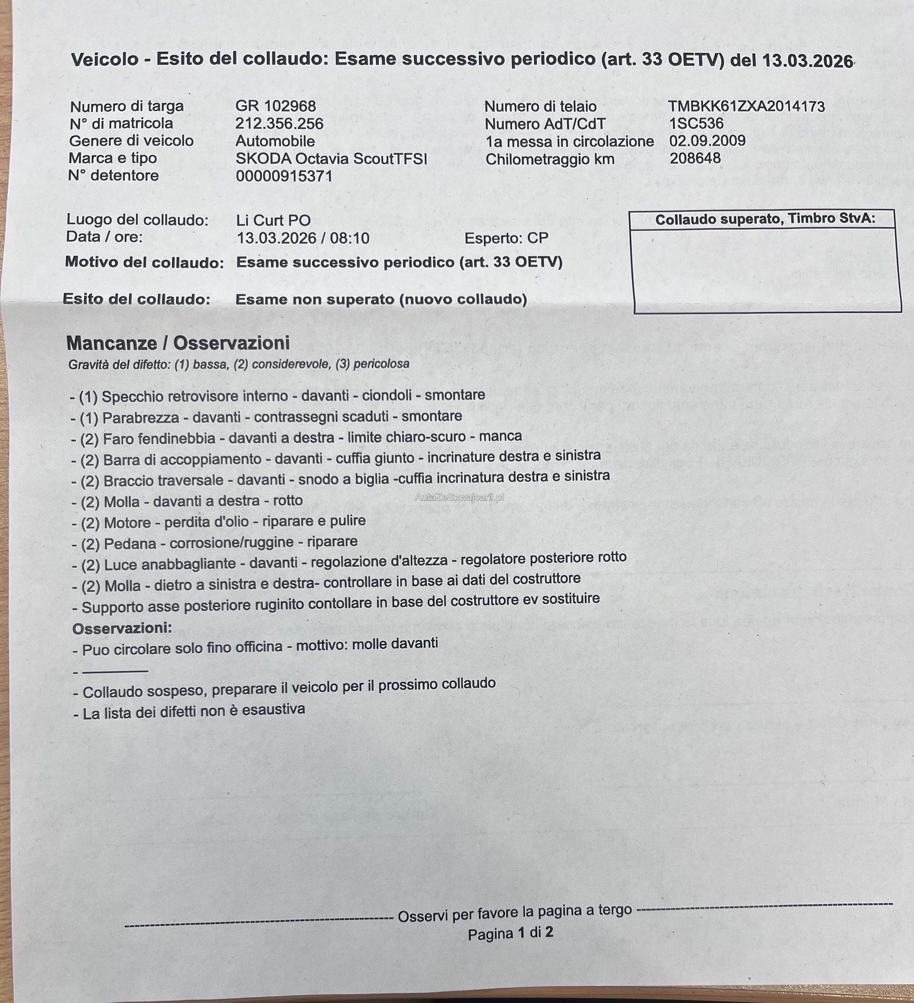 | Kommentar | Diversi lavori da eseguire, vedi lista MFK nelle foto!! |