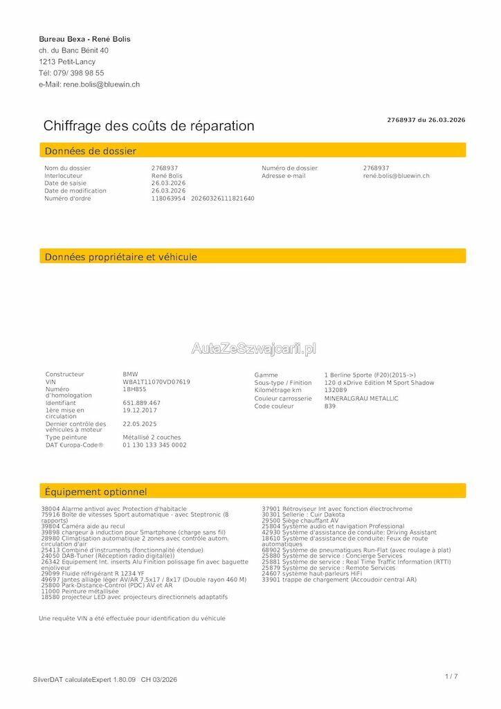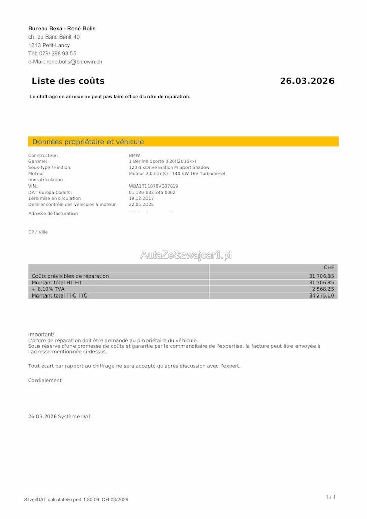 | Reparaturkosten | 34'275.00 CHF |