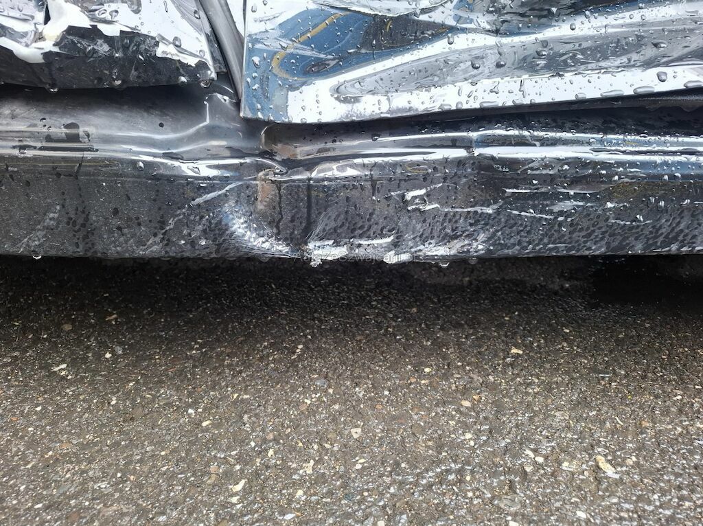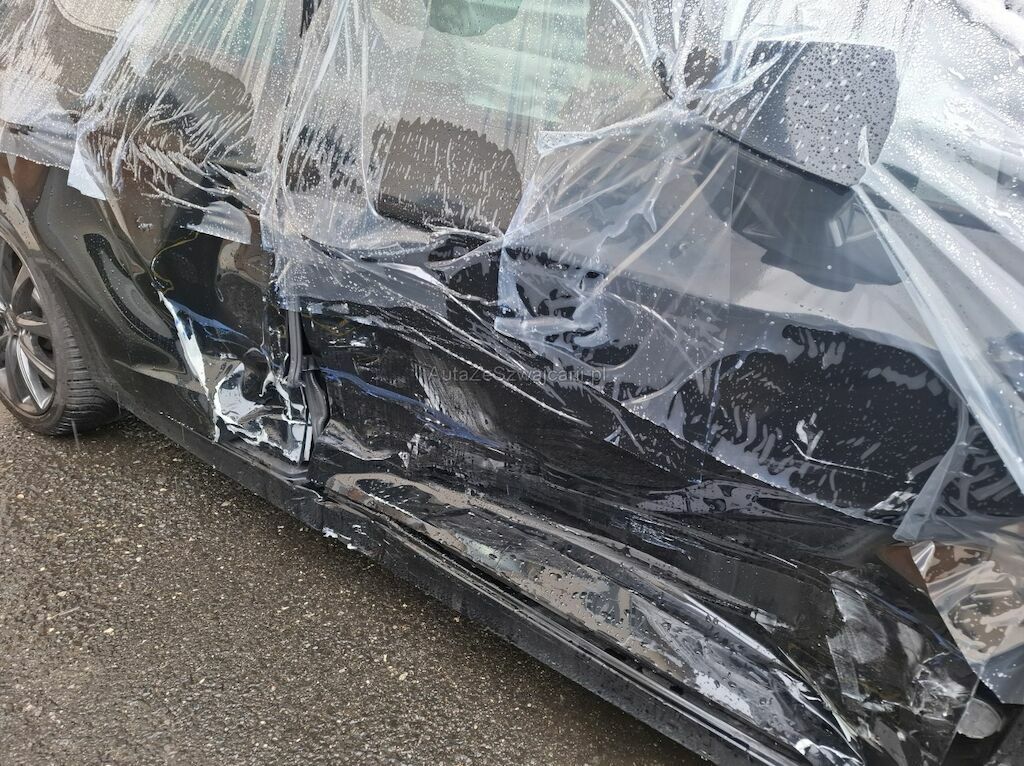 Türe vorne und hinten, Schweller, A-Säule, B-Säule und Seitenwand eingedrückt. Gurtraffe, Seitenairbag rechts und Kopfairbag rechts ausgelöst.