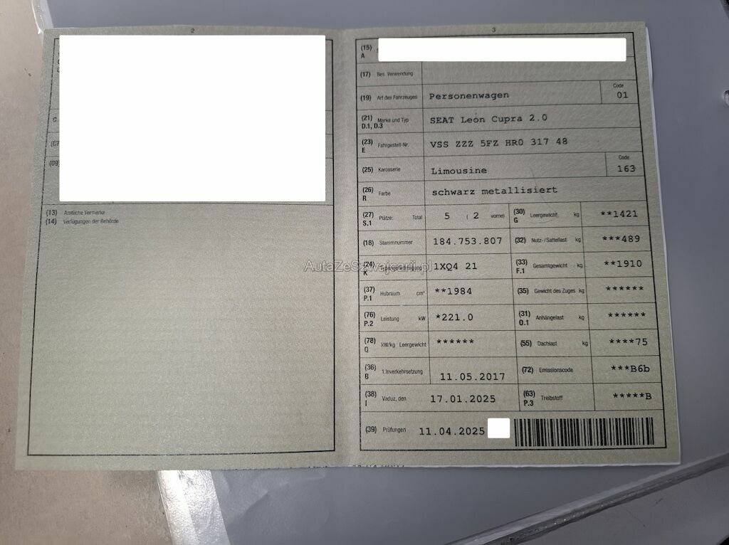 | Typenschein | 1XQ421 |