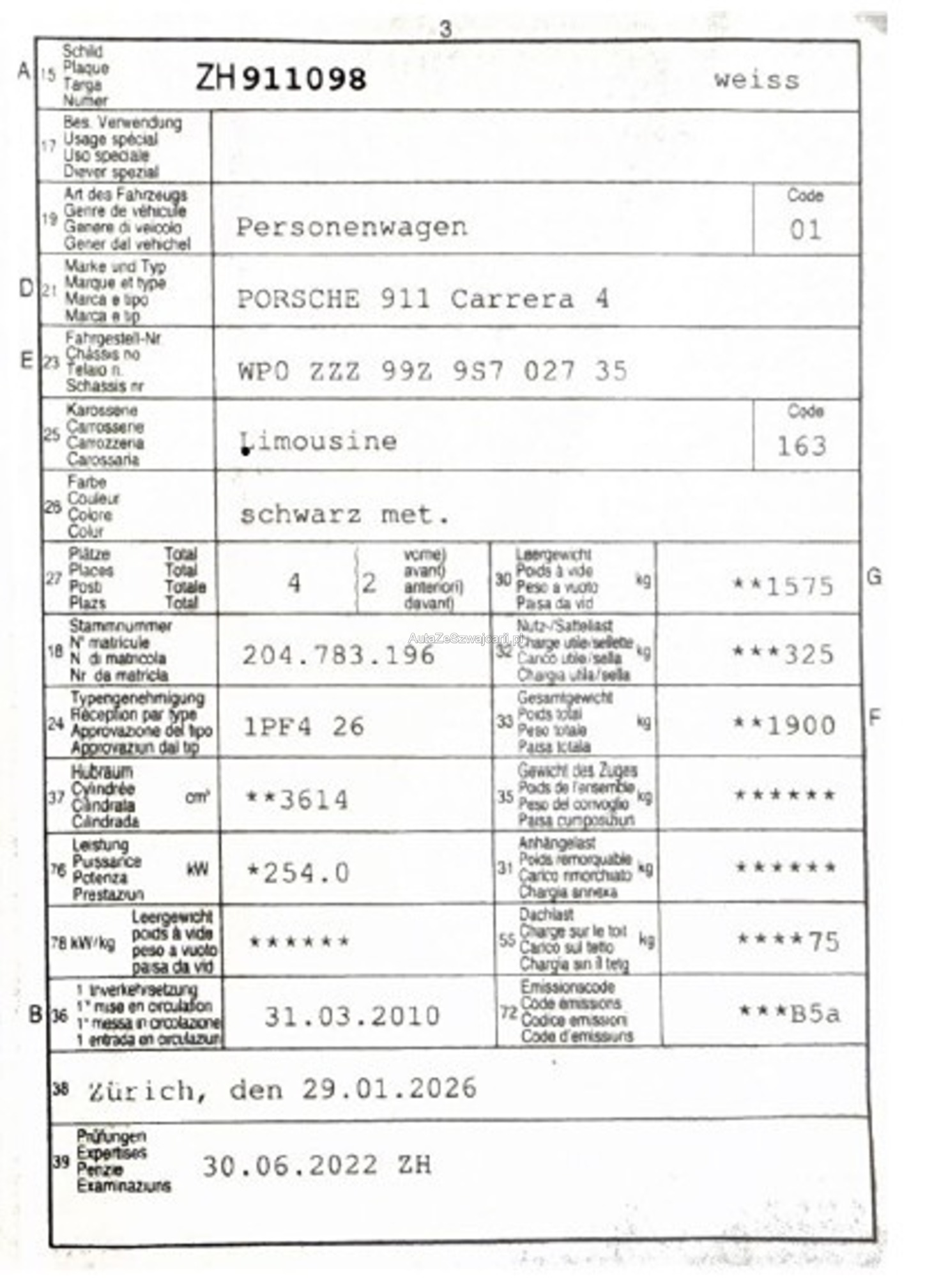 | VIN | WP0XXX |