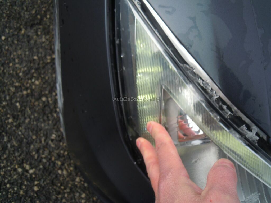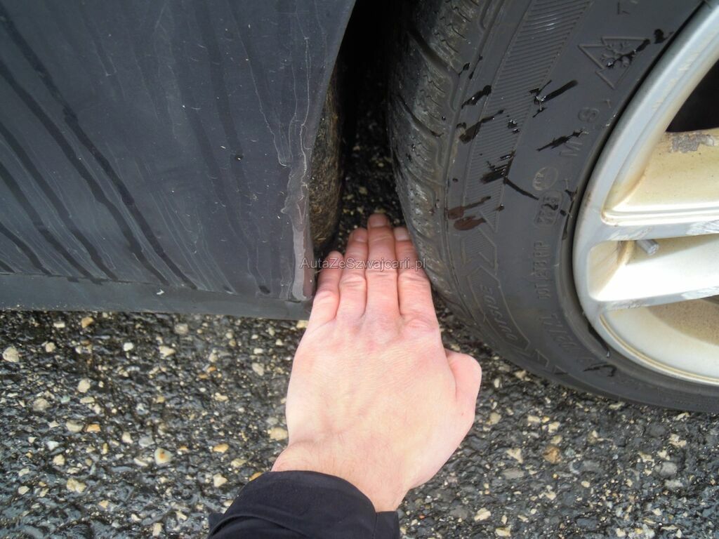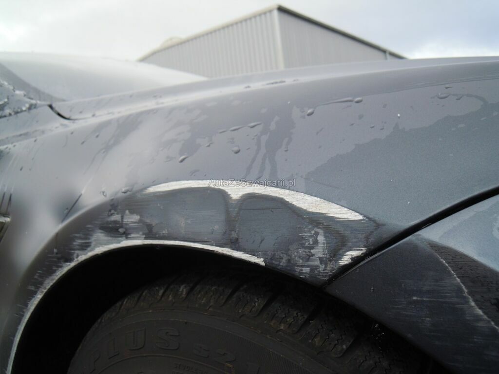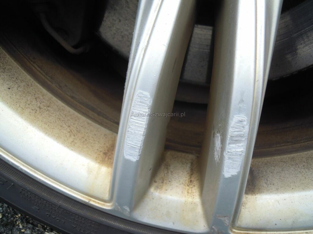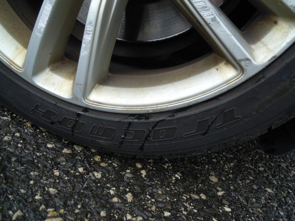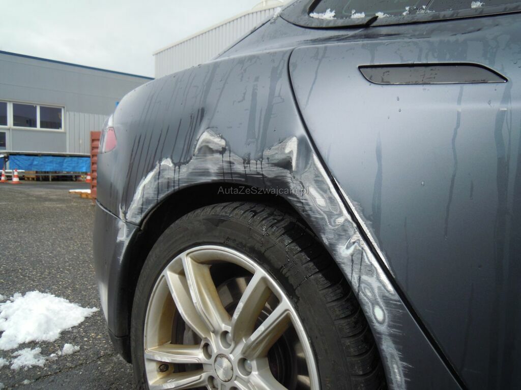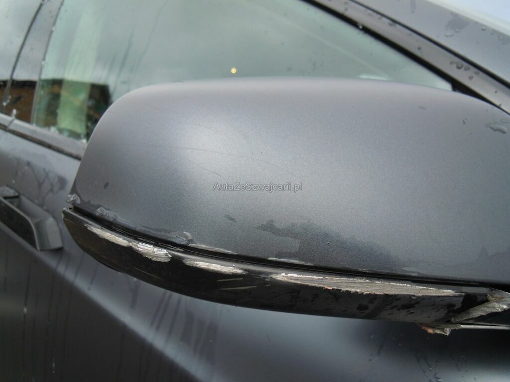 Dommage zone latérale droite: Pare-chocs avant, spoiler inférieur, pare-chocs arrière grffés, rétroviseur griffé et usé (trou), aile avant déformée, gonflée et griffée, support de phare cassé, porte arrière griffée, aile arrière fortement déformée, griffée et usée (trou), jantes griffées, jeu dans la crémaillère de direction (env. 2 cm ressenti dans le volant).