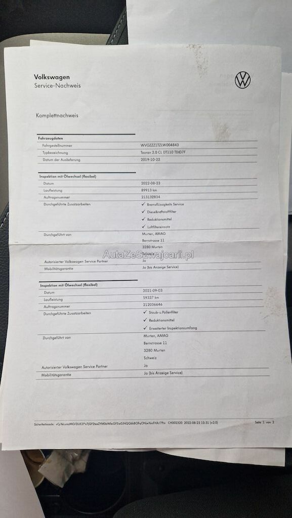 | Typ | Touran 2.0 TDI SCR Comfortline DSG |