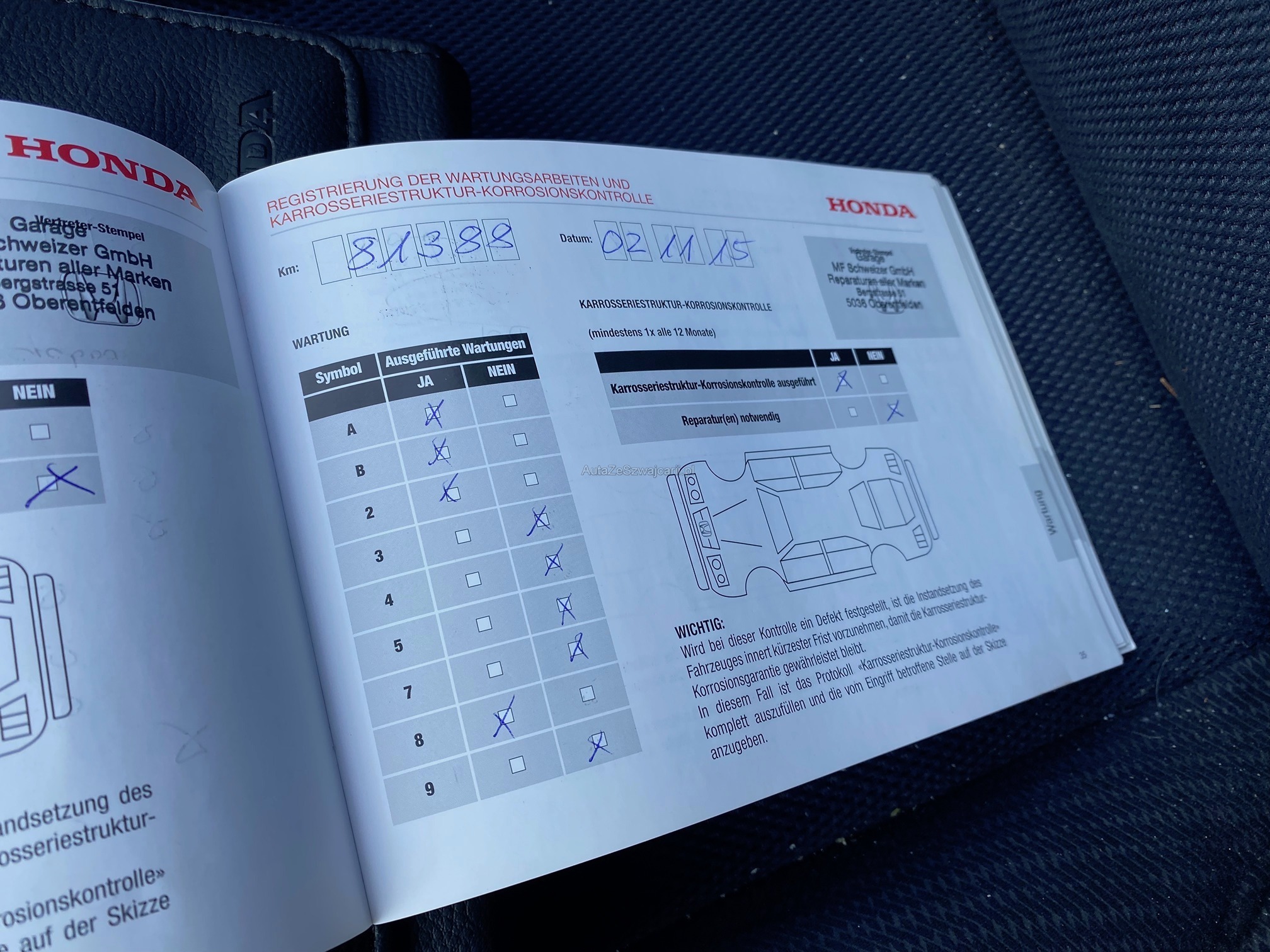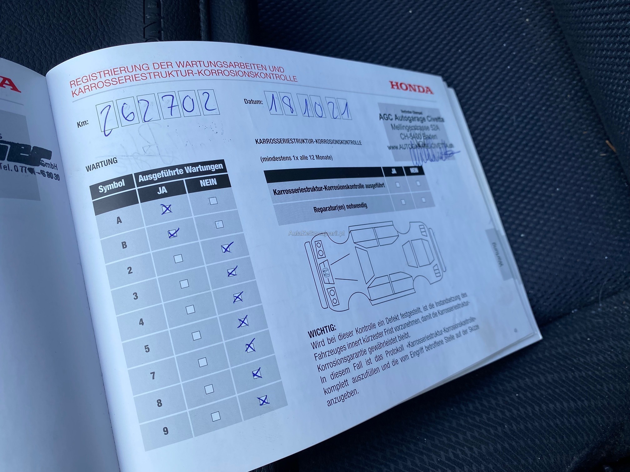 | Kommentar | Stark verschmutzt. Div. Stellen haben Kratzer und Beulen! Wurde technisch und mechanisch nicht geprüft. Kein Eintauschtest, keine Prüfung auf Mängel oder Probefahrt durchgeführt! Mängel möglich. Käuferrisiko! Gem. Vorbesitzer, läuft das Auto einwandfrei. Keine weitere technische oder mechanische Prüfung. Zustand, Fahrzeugbereifung und Ausstattung gemäss Fotos. Fahrzeugkauf auf eigenes Risiko, ab Platz ohne Garantie und Nachwährschaft. Die Gewährleistung für Sachmängel wird wegbedungen. Wandelung und Minderung sind ausgeschlossen! |