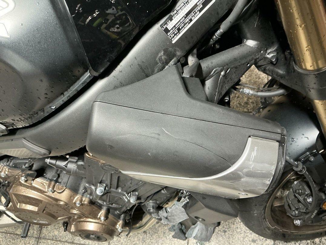 | Schadensbeschreibung | Choc côtés droit et gauche Jantes légèrement pliées, rayées Radiateur cassé Fourche et T de fourche sous réserve Carters, côtés droit et gauche, râpés Divers carénages cassés |