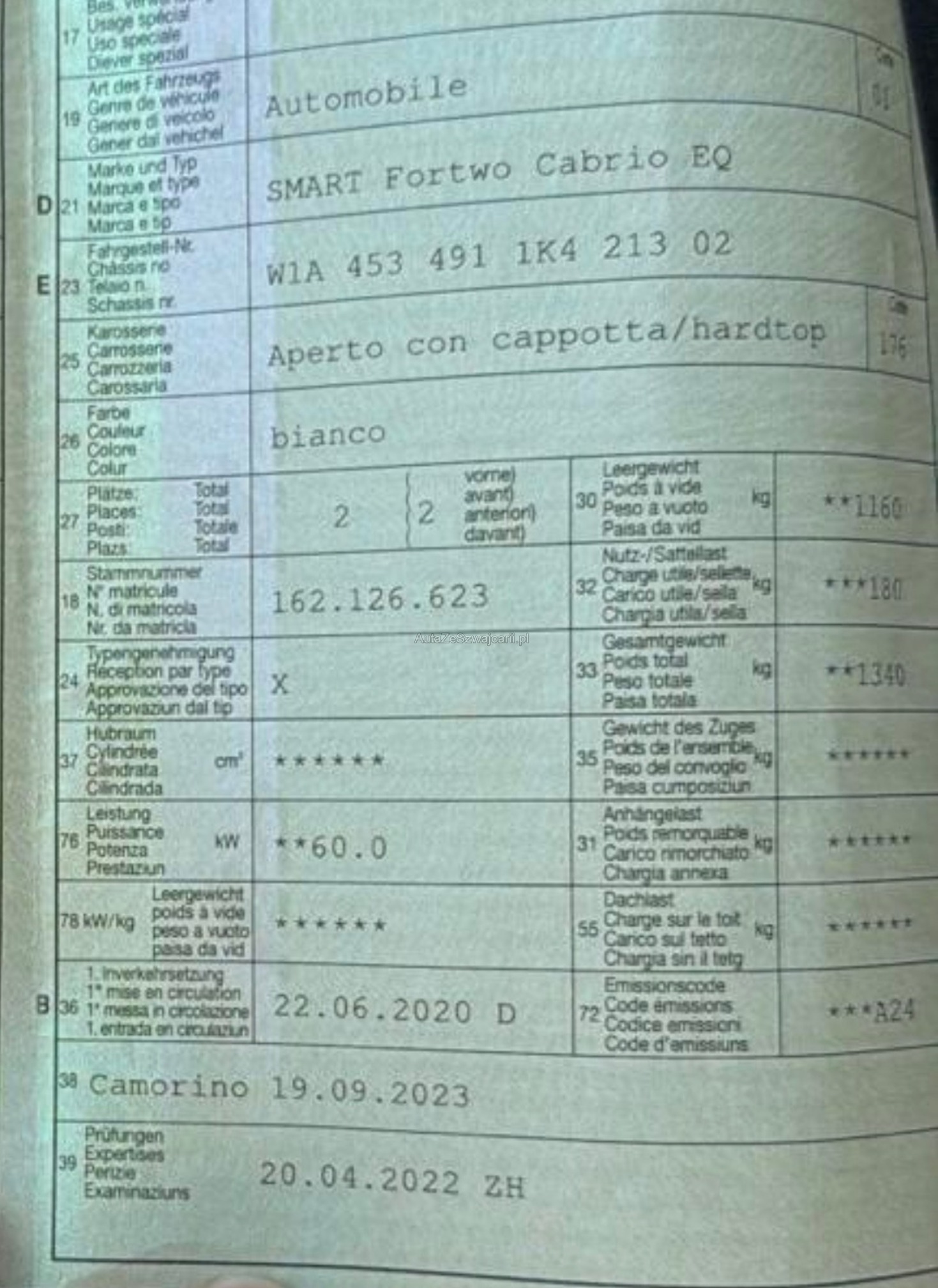 | Kommentar | Bilder von Kunde Wir haben dieses Fahrzeug weder gesehen oder geprüft Mögliches Eintauschfahrzeug Verkauf ab Platz ohne Garantie und ohne Nachverhandlungen |