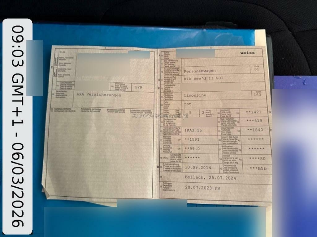 | Fahrzeugausweis | Vorhanden |