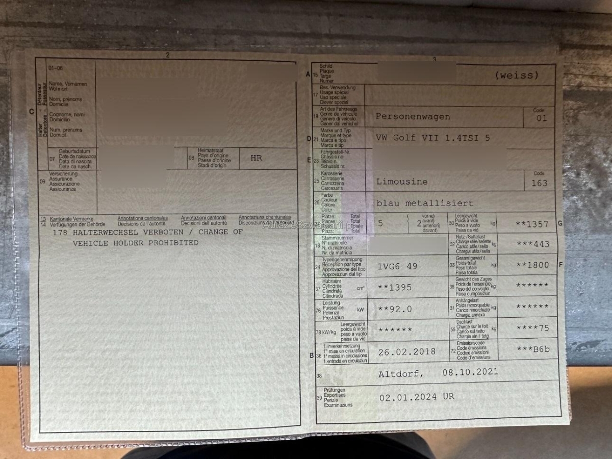 | Fahrzeugausweis | Vorhanden |