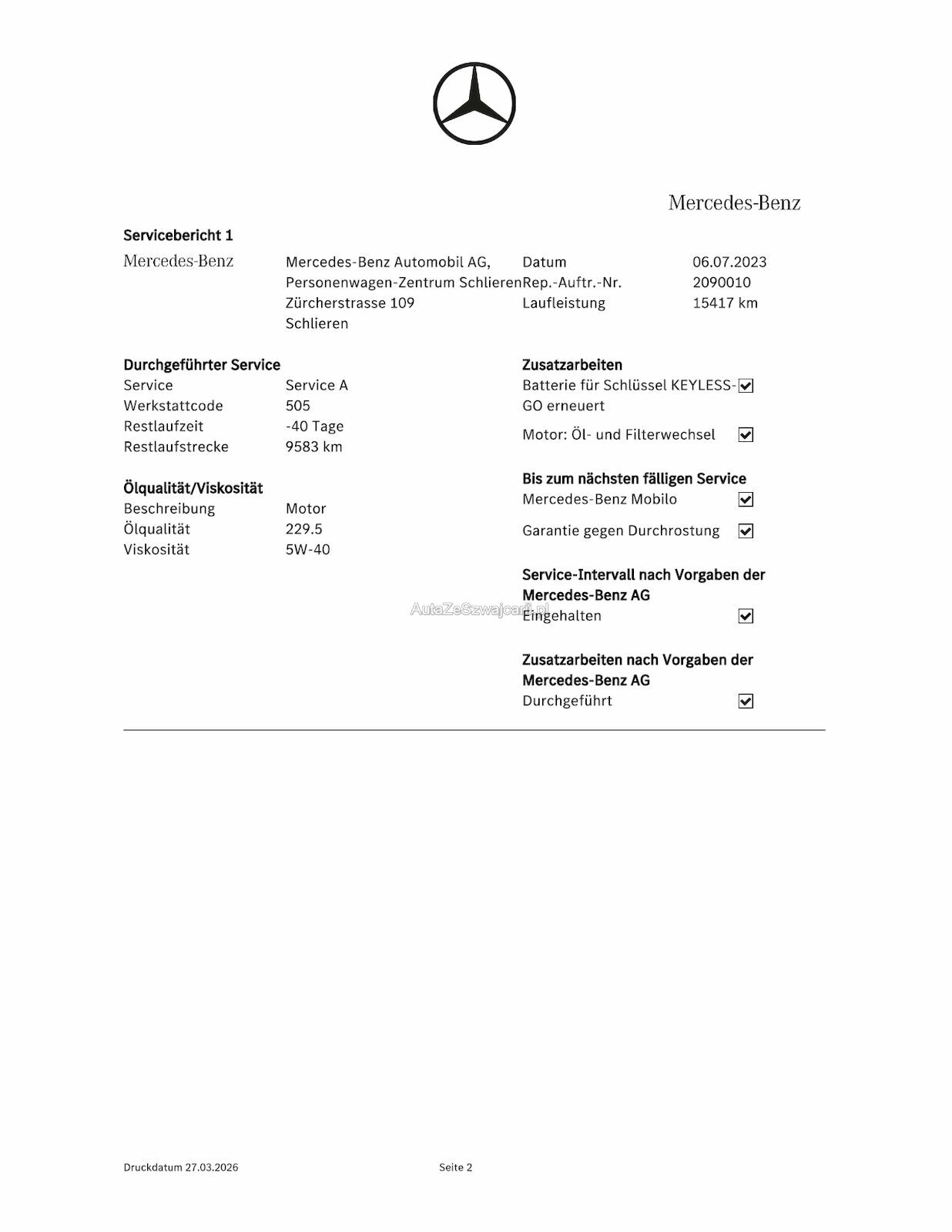 - Serviceberichte von Mercedes Benz : Foto