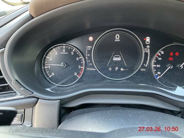 | Serienausstattung | 3-Punkt-Sicherheitsgurte auf allen Plätzen, Airbag: Airbag Fahrer und Beifahrer, Airbag: Fahrer-Knie-Airbag, Airbag: Seitenairbag für Fahrer und Beifahrer, Airbag: Window-Kopfairbags, Alarmanlage, Assist: 360° Kamera inklusive Rückfahrkamera, Assist: Adaptive Geschwindigkeitsautomatik MRCC (Mazda Radar Cruise Control), Assist: Antiblockiersystem (ABS), Assist: Aufmerksamkeitswarner DAA (Driver Attention Alert) mit Kamera, Assist: City-Notbremsassistent SCBS mit Fussgänger- und Fahrraderkennung, Assist: Dynamische Stabilitätskontrolle DSC und Traktionskontrolle TCS, Assist: Einparkhilfe hinten, Assist: Einparkhilfe vorne, Assist: Elektronische Parkbremse mit Auto-Hold-Funktion und Berganfahrhilfe, Assist: Front-Querverkehrswarner FCTA (Front Cross Traffic Alert), Assist: Geschwindigkeitsbegrenzer, Assist: Pre-Crash Safety mit aktivem Bremseingriff SBS (Smart Brake Support), Assist: Querverkehrsassistent hinten, Assist: Rückfahr-Notbremsassistent, Assist: Rückfahr-Querverkehrs-Notbremsassistent RCTB (Rear Cross Traffic Brake), Assist: Spurhalteassistent Lane Assist, Assist: Spurwechselassistent mit Totwinkelwarner BSM (Blind Spot Monitoring), Assist: Stauassistent CTS (Cruising &, Assist: Verkehrszeichenerkennung TSR, (Traffic Sign Recognition), erfordert Navigationssystem, Aussenspiegel elektrisch verstellbar, beheizbar und automatisch einklappbar, Aussenspiegel in Wagenfarbe, Benzinmotor Skyactiv-X mit Kompressionszündung SPCCI (Spark Plug Controlled Compression Ignition), Blenden im Seitenfensterbereich in Brilliant Black, Bordcomputer, Dachheckspoiler in Brilliant Black, Drehzahlmesser, Dunkel getönte Scheiben hinten, E-Call, Elektrische Fensterheber vorn und hinten mit Automatikfunktion, Elektrische Heckklappe, Fahrwerk: G-Vectoring Control, die Fahrdynamikregelung von Mazda, Garantie: Mazda Garantie 3 Jahre oder 100'000 km (ab 1. Inv.), Getriebe: 6-Gang-Automat, Heckscheiben-Wisch-/Waschanlage, Heckscheibenheizung, Innen- und Aussenspiegel automatisch abblendbar, Interieur mit Similileder in Kontrastfarbe Dark Blue, Katalysator geregelt, Keyless Entry, Klima: 2-Zonen-Klimaautomatik mit Ventilation hinten, Kofferraumorganisator Smart Cargo System (SCS), Kühlergrill und Blenden im Seitenfensterbereich in Brilliant Black, LED Innenraumbeleuchtung, Lederlenkrad und -schaltknauf, Lenkrad: Lenkrad beheizbar, Lenkrad: Multifunktionslenkrad, Licht: Adaptives Matrix-LED-Lichtsystem ALH (Adaptive LED Headlight) inkl. Fernlichtautomatik, Licht: Coming-home-Funktion, Licht: Drittes Bremslicht, Licht: LED Heckleuchten, Licht: LED-Lichtsignatur vorn und hinten, Licht: LED-Tagfahrlicht integriert in Scheinwerfer, Licht: Lichtautomatik, Licht: Nebelschlussleuchte, Licht: Scheinwerfer mit Coming-/Leaving-Home-Funktion, Mazda M Hybrid, Mild-Hybridsystem (M-HEV) mit Bremsenergie-Rückgewinnung, Media: 12 Lautsprecher, Media: Apple CarPlay und Android Auto, Media: Bluetooth für Smartphones und Audiogeräte, Media: Bose Premium Surround Sound-System, Media: Digitaler Radioempfang (DAB/DAB+), Media: Head-up-Display mit Projektion auf die Windschutzscheibe, Media: Instrumentenanzeige mit 7'-TFT-Multidisplay, Media: MZD Connect mit 8,8'-TFT-Farbdisplay und Multi Commander HMI auf der Mittelkonsole, Media: Mazda Connected Services, Media: MyMazda App, Media: Navigationssystem, Media: USB-Anschluss, Media: Zweiter USB-Anschluss, Polster: Stoff-Ausstattung, Rahmloser Innenrückspiegel, Räder: Leichtmetallfelgen 18", Räder: Reifendruckkontrollsystem, Räder: Reifenreparatur-Set (Tire Fit), Scheibenwischer mit Regensensor und integrierter Waschdüse mit Enteiser-Funktion, Servolenkung, Sitze: Beifahrersitz höhenverstellbar, Sitze: Fahrersitz in Höhe und Sitzkissen in Neigung verstellbar, Sitze: ISOFIX Kindersitzvorrichtung, Sitze: Kopfstützen hinten, Sitze: Kopfstützen vorne höhenverstellbar, Sitze: Rücksitzlehnen getrennt abklappbar 60:40, Sitze: Vordersitze heizbar, Start-/Stop-Knopf, Steckdose 12V, Wegfahrsperre elektronisch, Zentralverriegelung mit Fernbedienung, i-stop, das intelligente Stopp-Start-System von Mazda |