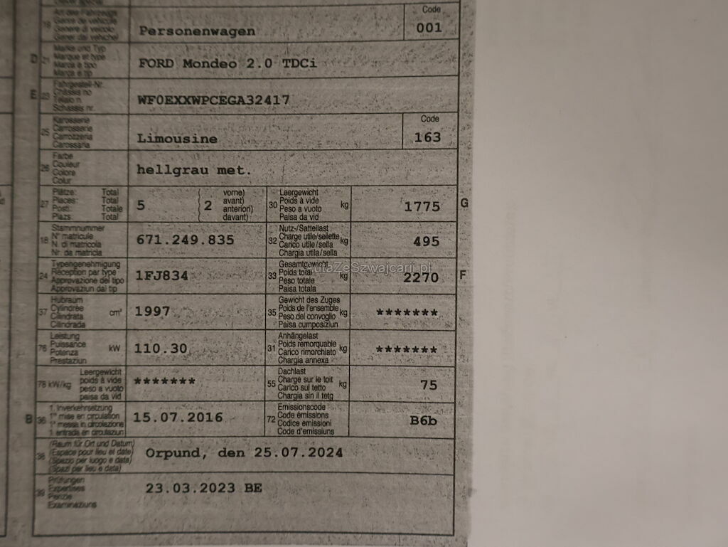 | Typ | Mondeo 2.0 TDCi |