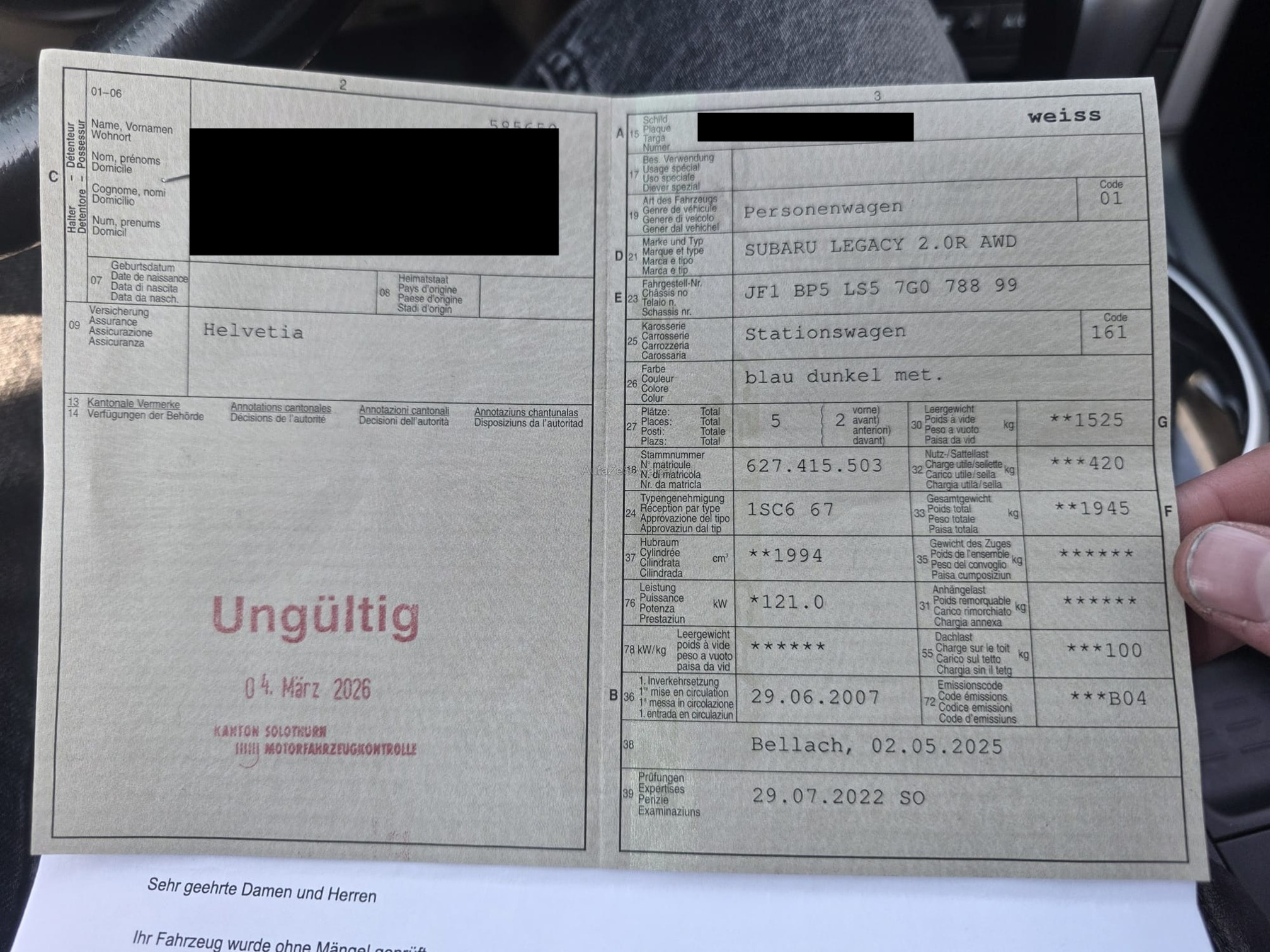 | Kommentar | Frisch ab MFK 20.03.26 -Service gepflegt -Neuwertige Winterreifen -Bremsklötze vorne und hinten neu -Batterie neuwertig -!!!Technisch einwandfrei!!! -Unterboden wurde in Carrosserie frisch aufbereitet Für sichtbare oder nicht sichtbare Mängel wird nicht gehaftet. Das Risiko liegt vollumfänglich beim Käufer. Nachdem der Höchstbietende den Zuschlag erhalten hat, gibt es keine Nachverhandlung. Ab Platz ohne Garantie, Wandelung und Minderung werden wegbedungen. Fahrzeug wurde durch Kundschaft fotografiert sowie beschrieben. |